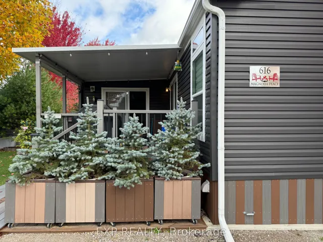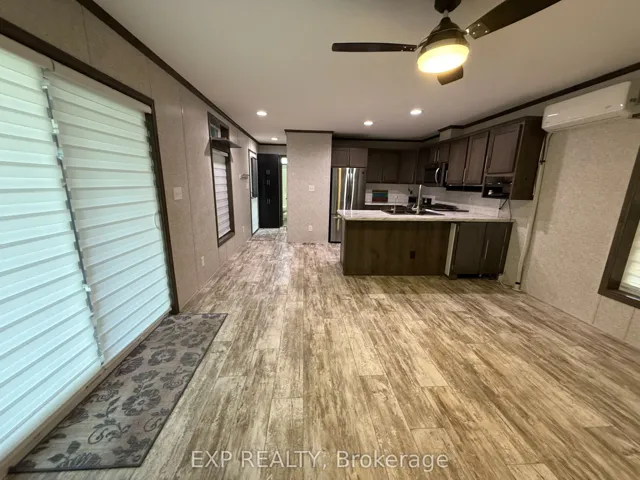 +"PublicRemarks": "Located in 9 month section of award winning Happy Hills Resort. Gorgeous Custom Built 2021 Commodore Park Model with Additional Sunroom (16 x 42 and 12 x 20). 8ft ceilings throughout allow for extra large double hung windows and transoms. Zebra blinds on all. Eye catching composite deck with hard top coverage. Sunroom also has composite flooring with loads of added storage, 3 ft windows and pendant lighting. Open concept kitchen has new fully upgraded stainless steel appliances including a higher end gas stove with air fryer and grill, fridge with ice cube maker, a dishwasher, microwave and farm house sink. Solid oak cupboards, and pull out drawer storage including unique pull out storage in "dead space corner". Cupboards are pulled over the fridge and gabled. 3 Stage Home Filter System and higher particle filter for kitchen sink and ice maker. Electric Fireplace in the living room. Both bathrooms have granite vanities and marble flooring. Built in dressers and extra storage in the master bedroom. The laundry is located in the closet in the second bedroom. Both bedrooms fit king size beds. Cement pad and insulated spray foam under both modular and sunroom. 7 x7 shed with hydro. BBQ included on front deck and there is another composite deck off the back door. Lovely castor planters with Blue Spruce in front. A truly beautiful location with a large heated family swimming pool, children's splash pad, heated adult's only swimming pool, a 9 hole golf course and driving range, Bocce Ball, Lighted Tennis court, Pickleball, Volleyball, Basketball, Shuffleboard, Horseshoe pits, Daily children's crafts/activities, hayrides, bingos, movies, special tournaments, mini animal farm, hiking trails, several playgrounds, lighted skateboard and bicycle activity center and more. Get in on this lovely lifestyle early! Contact listing agent for fees, deposit and occupancy requirements. 15 minutes to the 401and 10 minutes to amenities."