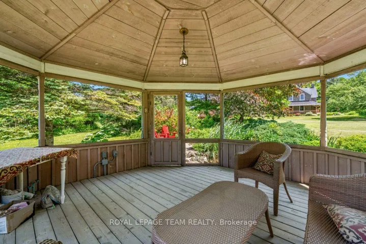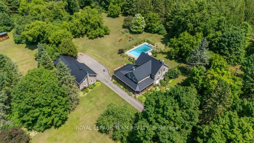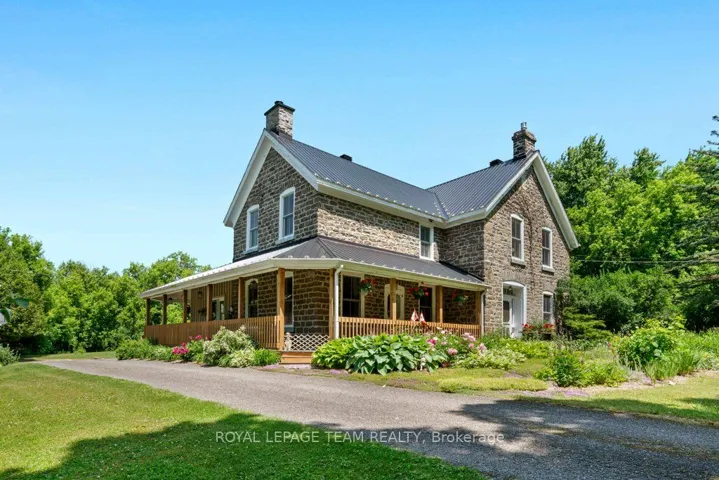 +"PublicRemarks": "Timeless Stone Estate on 74 Acres of Pure Charm. This property includes a 3 Bedroom, 2.5 bath main home and a 3 Bedroom, 2 bath Guest house. Step back in time without giving up a single modern luxury in this stunning stone home originally built in 1876, beautifully preserved and thoughtfully upgraded to blend historical character with todays conveniences. This property also has a 3 Bedroom/2 Full Bath Guest House with it's own Furnace and Electrical. Nestled on 74 private acres with meticulously cleared trails (approx 5km worth!), this breathtaking estate is truly one-of-a-kind. From the moment you step inside, you'll be greeted by original pine floors, old time character and a warm, inviting atmosphere. The main floor boasts a cozy living room with a wood-burning stove, perfect for crisp evenings, and a powder room cleverly tucked beneath the stairs. The former summer kitchen has been fully insulated and transformed into a chefs dream complete with granite countertops, reverse osmosis system, and a classic gas AGA stove offering additional heat and featuring two burners and FOUR ovens, ready to handle anything from Sunday roasts to holiday feasts. The kitchen entrance also has heated flooring. Upstairs, you'll find three bedrooms, including a private primary suite with its own staircase, a tranquil ensuite bath with heated floors, and thoughtful details throughout. The second level also features a 4-piece bathroom, plus a unique Jack and Jill bathroom offering smart storage and a hidden washer/dryer for added convenience. The exterior is just as dreamy, featuring a newly built porch and railing, 20 x 40 in-ground pool with new stonework, liner, and diving board, surrounded by a relaxing gazebo and tranquil pond. There is a pool heater but not connected or installed (though never used by the sellers), making it easy to extend swim season if desired."