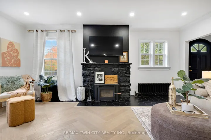 +"PublicRemarks": "Welcome to 360 Luella, an enchanting 3 bedroom East Ward home set on a mature, tree lined street close to the heart of Downtown Kitchener. A flagstone porch leading to the all brick exterior and 5 car driveway with detached garage add to the whimsical curb appeal. The original character has been maintained inside and out, with mechanical upgrades and aesthetic updates to give a compelling mix of charm and elegance. Step inside to the open concept living room and kitchen, where you will love the many large windows letting in natural light and the contrast of modern black octagon tile, black stone wood burning fireplace and the classic herringbone hardwood floors. The chic kitchen blends style and class with gorgeous light wood cabinetry, black backsplash and hardware, stainless steel appliances and exquisite Calcutta marble countertop and breakfast bar. The main floor also features 2 spacious bedrooms, and 4 pce bath. Upstairs is your expansive primary suite with a sitting/dressing area, pine floors and huge walk in closet. This space would be ideal to build an ensuite to give you your own private bathroom. Back downstairs, to the back of the kitchen is a seperate entrance taking you to the large, full sized basement with an easily-to-be finished rec room with gas stove fireplace, laundry and plenty of storage. Take the backdoor to your private fully fenced yard and enjoy the outdoors and serene greenery on the quaint patio. Situated just minutes to the expressway, short walk to the Ion, Downtown, Farmers Market, Centre in the Square, Library, parks, schools as well as bistros pubs and restaurants, perfect for those who love the Urban lifestyle with the perks of owning freehold and having private outdoor space!"