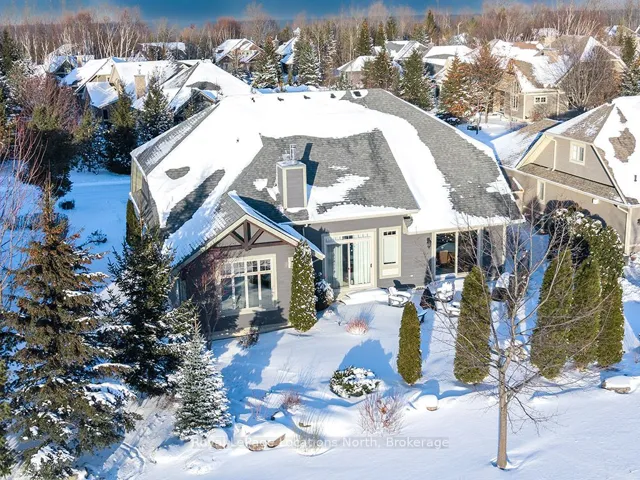 +"PublicRemarks": "Discover over 5,300 square feet of beautifully appointed living space in this exceptional 5 bedroom, 4 bathroom home located in the prestigious Lora Bay community, just minutes from downtown Thornbury.The open-concept main floor welcomes you with soaring ceilings in the great room, highlighted by a striking floor-to-ceiling stone wood-burning fireplace that creates a warm and inviting focal point. The chef's kitchen offers granite countertops, high-end built-in appliances, a generous island with bar seating, and plenty of space for gathering with family and friends. The spacious primary suite features a gas fireplace, luxurious 5pc ensuite bathroom, and walk-in closet, providing a private and serene retreat. Also on the main level are a dedicated office/den, a convenient laundry room with pantry, and access to the attached two-car garage.Upstairs, a versatile loft area overlooks the main living space and leads to 2 guest beds and a 5pc bath. The finished lower level is perfect for entertaining, complete with a large rec room featuring a bar and projector, pool table, flex room, 2 additional beds, wine cellar and a 3pc bath.Outside, the private backyard offers a tranquil escape surrounded by mature trees, beautiful landscaping, and a new privacy fence-ideal for hosting gatherings after a day of golf or skiing.Recent updates include a new fibreglass front door and custom sliding patio doors (2025), new carpet in the den (2025), new roof (2024), a fitness room and recreation room bar addition (2024), a wine cellar (2021), and high-efficiency furnace and air conditioning (2020). Extensive landscaping enhancements complete this impressive property.Enjoy access to an award-winning golf course, clubhouse restaurant, members-only lodge, fitness centre, and two private beaches. With private ski and golf clubs nearby, this home perfectly blends luxury, comfort, and community in one of South Georgian Bay's most desirable settings."