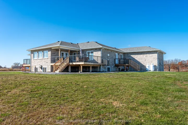 +"PublicRemarks": "Set on a picturesque corner lot just shy of 3 acres, this recently constructed stone-exterior bungalow in Gibraltar Estates embodies exceptional craftsmanship & pride of ownership throughout. Thoughtfully designed & custom built, the home showcases elegant & modern finishes providing utmost comfort in a serene rural surrounding. Enjoy views of Gibraltar Bay & meadows beyond, where nature creates a truly peaceful setting only minutes from Kingston's East-End amenities & the 401. The bright main floor layout offers 4 generously sized bedrooms & 3 baths, which includes the spacious primary suite with walk-in closet & 4pc ensuite. At the heart of the home you'll find the gorgeous, fully equipped kitchen boasting glimmering quartz countertops & ample cabinetry, with easy access to the large living room featuring a propane fireplace & custom mantle, sheltered under a stylish tray ceiling. Separate entrances to the partially finished basement provides exciting potential for a future in-law suite. Develop this nearly 2,500 additional square feet of bonus living space to your liking, adding future value to your investment. Let's not forget about the massive attached triple car garage affording you all the storage you could ask for. All around a great opportunity to own a stunning, move-in-ready property that perfectly balances sophistication, space, & country charm."