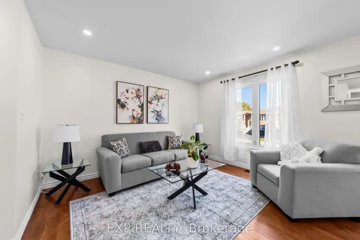 +"PublicRemarks": "Beautiful detached 3+1 bedroom home with 4 parking spaces . Featuring an open-concept main floor with a spacious great room and fireplace, combined dining area with walk-out to a huge backyard. Modern kitchen with gas stove, quartz countertops, tile flooring, and backsplash. Hardwood flooring throughout. Second floor offers a primary bedroom with large closet and windows, plus two generous bedrooms sharing a 3-pc bath. Finished basement includes a rec room, additional bedroom, laundry and 3-pc bath. Huge backyard -perfect for summer entertaining. Conveniently located close to schools, highways, and all amenities. Upgrades & Improvements:Roof replaced (2017) | A/C (2017) | Windows & Front Door (2021) | Garage Door (2021) | Furnace (2022)"