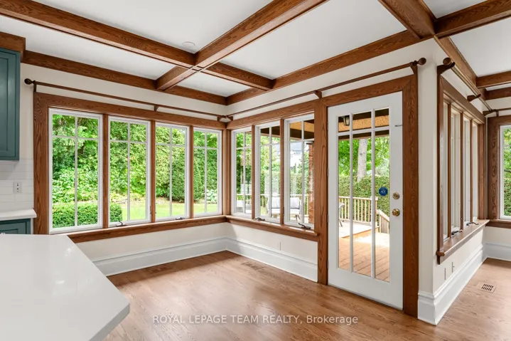 +"PublicRemarks": "At the corner of Park and Manor in prestigious Rockcliffe Park, this exceptional home fuses modern comforts with timeless elegance. Sitting proudly on a coveted corner lot, manicured hedges, mature trees, and Tudor Revival charm create a striking first impression. A circular drive, side carport, and understated landscaping set the stage for refined living. Inside, heritage details shine plaster cove ceilings, tall baseboards, and oak staircases blend with thoughtful updates. A main-floor den offers quiet productivity; the formal living room impresses with a granite-clad gas fireplace and custom cherry cabinetry. The open kitchen and dining area wow with teal cabinetry, quartz surfaces and coffered ceilings an entertainers dream with access to a covered cedar deck and expansive yard. Upstairs, three generous bedrooms, second-floor laundry, and a stunning primary suite with garden views, vaulted ceilings, and spa-like ensuite deliver luxury and calm. Two charming third-floor bedrooms with a full bath make perfect guest or play spaces. A finished lower level offers flexible recreation space, a gym zone, and a second entrance. Walking distance to top schools and minutes to down town this Rockcliffe gem is ready for family life at its finest."