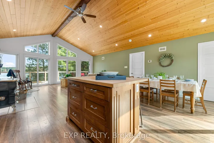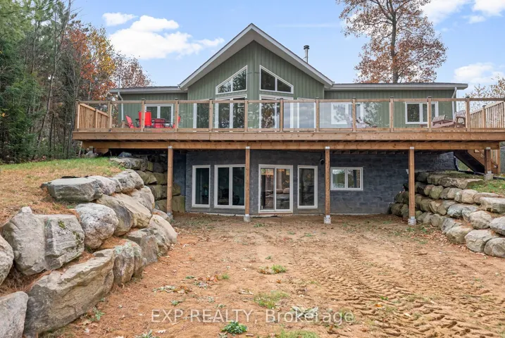 +"PublicRemarks": "Newly built in 2019, 79 Warbler Way offers the perfect blend of comfort, craftsmanship, and natural beauty. This quiet oasis sits along the scenic shores of the Madawaska River, part of the sought-after Kamaniskeg Lake system offering over 90 km of boating, dining, and exploring opportunities.Step inside this 4-bedroom, 1.5-bath home and experience open-concept living at its finest. The vaulted ceilings, custom walnut kitchen with island, and timeless wood fire cookstove create a warm and inviting space filled with natural light. Walk out onto the sprawling deck and take in the tranquil waterfront views-ideal for morning coffee or evening sunsets. The primary bedroom features a convenient ensuite, already roughed-in for a shower of your choice. The main floor also offers laundry facilities, two additional bedrooms, and radiant heating for year-round comfort.The lower level, with towering ceilings and in-floor heat, doesn't feel like a basement. It includes a large recreation area with a walkout to the waterfront, a fourth bedroom, and a plumbed bathroom ready for your finishing touches.This home is off-grid solar powered with generator backup and the option to connect to hydro. Heating is provided by an outdoor wood furnace, supplemented by propane for efficiency. Beautiful landscaping leads to a sandy beach with a gentle slope into the water-perfect for swimming and family fun.To make this opportunity even better, a vacant lot (MLS #X12499588), offering space to expand, build, or simply enjoy as a private buffer. Whether you're seeking a peaceful retreat or an active lifestyle on the water, 79 Warbler Way delivers it all."