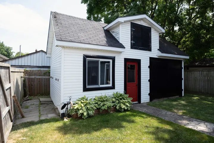 +"PublicRemarks": "Nestled on a quiet cul-de-sac in the heart of Trenton, just minutes from CFB Trenton, this picture-perfect 3 bedroom, 1.5-storey home offers the ideal mix of warmth, character, and modern convenience. From the moment you step inside, you will feel the care and pride of ownership throughout. The sun-drenched kitchen is as functional as it is beautiful, featuring a moveable island, ample counter space, and a seamless flow into the spacious dining area, perfect for hosting family dinners or casual weekend brunches. Patio doors open onto your private backyard oasis, making indoor-outdoor living effortless. With one bedroom conveniently located on the main floor and two generously sized bedrooms upstairs, all with soaring 9-foot ceilings. This home offers flexibility for families, guests, or a work-from-home setup. The 4 pc bath also with 9-foot ceilings is spacious and thoughtfully designed, offering both comfort and exceptional storage, including a massive linen closet. Outside, your fully fenced backyard is a true retreat. Picture yourself enjoying summer evenings on the patio surrounded by blooming perennials, barbecuing with friends, or simply relaxing in your peaceful, private space. Don't miss the 24' x 11' detached workshop with loft storage for tucking away your toys or a dream space for hobbyists, creatives, or anyone craving a quiet escape. Whether you're starting out, settling down, or just looking for a place that feels like home, this property offers something truly special. Steel Roof 2021,Eaves 2019, AC 2024, All appliances included. Move in Ready. Come make this house your Home!"