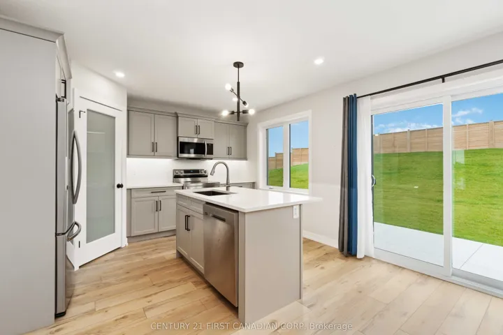 +"PublicRemarks": "This stunning, better than new 2-storey semi-detached home offers 1,736 sq. ft. of beautifully finished living space and an attached 2-car garage. Perfectly suited for a growing family, this property combines modern elegance with functionality and comfort. Step inside to an open-concept main floor that's perfect for entertaining. The custom kitchen designed by Casey's Creative Kitchens features Carrara Marmi quartz countertops, high end SS appliances, beautiful gold details, and an island reimagined from the original floor plan to create even more space in this already generous layout. The main floor also includes a 2-piece bathroom and a massive laundry/mudroom with inside entry to the garage. Upstairs, you'll find three spacious bedrooms - each a great size - including an oversized primary suite with a large walk-in closet and a 3-piece ensuite featuring marbled hexagon tiles and an upgraded adaptable hand-held wand shower fixture. Every finish has been thoughtfully chosen, with exquisite touches and tasteful upgrades throughout.The unfinished basement offers development potential, with room to add an additional bedroom, a bathroom (rough-in already in place), and a generous recreation area.Outside, enjoy a deep lot with plenty of green space, a deep concrete driveway, and freehold ownership with no condo fees - offering both freedom and value! Located under 10 minutes from Highway 402, and just 15 minutes to Sarnia or 30 minutes to Strathroy, this home is close to schools, shopping, and a family-friendly park with a splash pad. This home must be seen to be truly appreciated!"