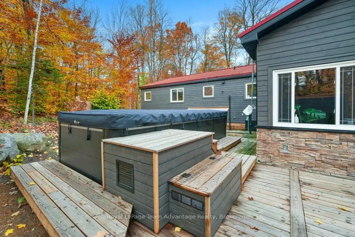 +"PublicRemarks": "Welcome to your year-round home on beautiful Hooton Lake - a quiet, non-motorized lake perfect for peaceful living and time spent in nature. Set on 2.84 acres with 243 feet of shoreline this 3-bedroom, 2-bathroom property features a rare combination of privacy, comfort and lakeside charm. Built in 1990 and thoughtfully updated, the home features a chef-style kitchen with island ideal for entertaining and a sunken living room with a high efficiency wood burning fireplace. A cozy family/sunroom with propane fireplace, expansive windows and a walkout to the deck - creating an effortless indoor/outdoor area with covered area with infrared heaters, generous decking and a swim spa for year-round relaxation, exercise or just relax in the hot tub end of the spa. The landscaped grounds include your own private beach-perfect for morning swims, paddle boarding or soaking up the sun. A Generac generator adds peace of mind, while a detached garage & bunkie add plenty of space for toys, gear and guests. Ideal for family living or weekend escapes. Whether you're enjoying quiet mornings by the lake, hosting friends on the deck or unwinding in the swim spa this Hooton Lake home delivers comfort, nature and four-season enjoyment. Located in Seguin close to Parry Sound and all amenities. Home is calling, it's ready for you to settle in and start making memories."