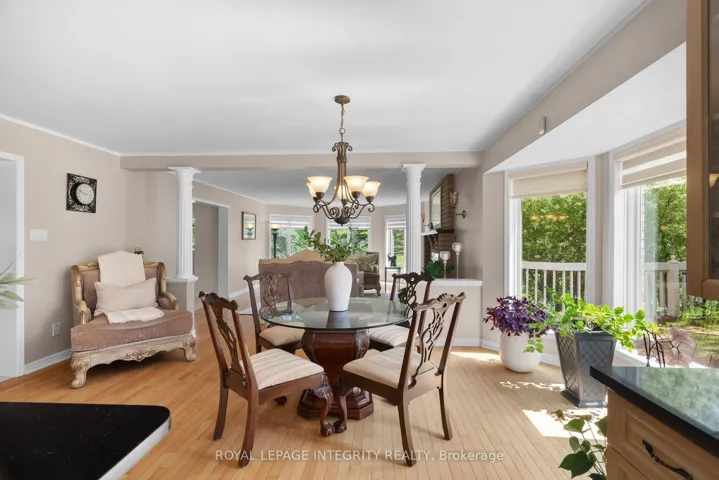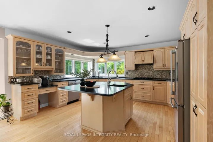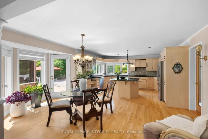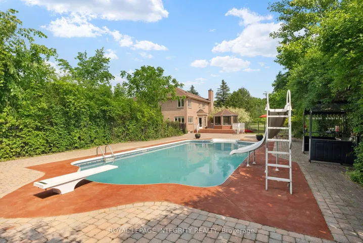 +"PublicRemarks": "A rare gem in coveted Emerald March Estates! This incredible home sits on a prestigious, quiet circle on just over 2 private acres, minutes from the city and steps from all the amenities of Kanata, a setting that doesn't come available often! Perfect for multi-generational living, the main home is sure to impress as it's been meticulously maintained and offers, 4bedrooms upstairs, a show stopping staircase, formal living & dining rooms, a gorgeous eat-in kitchen, and versatile rooms for a home office or main floor bedroom. The lower level features a full in-law suite apartment with private entrance and offers a spacious bedroom with ensuite, and full kitchen. This level also includes a large recreation room with wet bar and half bath, essential for entertaining. Outside is your private retreat, a country setting in the city offering a home for wildlife, fenced in-ground pool, gazebo, pool house, and a triple car garage with interlock driveway, all surrounded by greenery and mature trees. This truly one-of-a-kind estate is calling you home!"