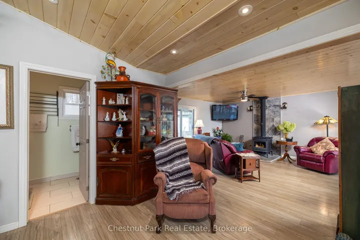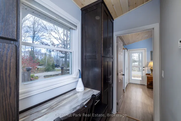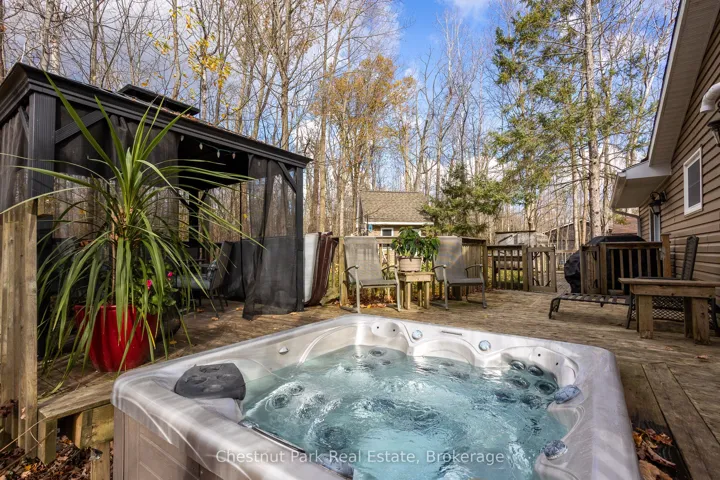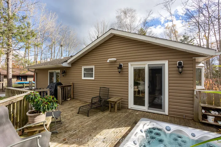 +"PublicRemarks": "Charming Year-Round Home or Cottage Just Steps from Miller Lake! This beautifully renovated year-round retreat offers the perfect blend of comfort, craftsmanship, and convenience--ideally located just 100 feet from public lake access. Set on a hardwood tree-lined lot, this home has been substantially updated between 2016 and 2018, inside and out. The bright open-concept living area features vaulted pine ceilings, new flooring, and a cozy wood stove accented by custom stonework. The chef's kitchen is a true highlight, showcasing handcrafted Mennonite cabinetry with soft-close drawers and pull-outs, granite double sink, peninsula with bar seating, and stainless appliances including a propane convection double oven. The home provides two spacious bedrooms, including a primary suite with a 2-piece ensuite and walkout to the deck. The second bedroom features custom-built double bunk beds and double insulation for privacy. Additional features include a modern stackable washer/dryer, hallway cabinetry with built-in desk, propane furnace, on-demand hot water, and custom insulated blinds. Enjoy outdoor living at its best with a forest lined deck and hot tub, screened-in hard-roof gazebo, and professionally landscaped yard with gardens, stonework, and dedicated firepit area. A detached garage/workshop offers plenty of storage, while the insulated two-storey bunky--finished in pine with pot lights, ceiling fan, and space to sleep up to six--provides a great space for guests. Meticulously maintained and move-in ready, this charming property is perfect for full-time living or as a four-season getaway. Experience the beauty and tranquility of Miller Lake living--just minutes from boating, fishing, and exploring the wonders of the Bruce Peninsula!"