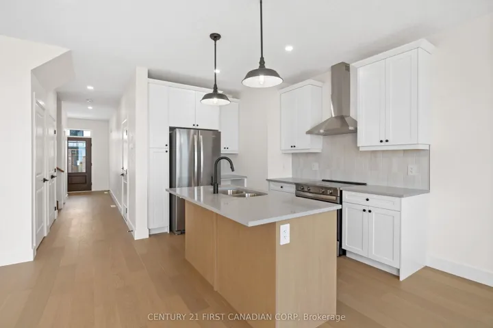 +"PublicRemarks": "This recently finished two story freehold townhome in Phase Two of the Ausable Fields Subdivision is ready for quick possession, allowing you to move in without delay. Proudly built by Van Geel Building Co., this premium block of townhomes is perfectly positioned to capture breathtaking sunsets from the backyard, providing a serene and private setting. There are only three units left that will enjoy this backdrop, making this an exclusive opportunity. The Harper Plan provides 1,589 sq. ft. of thoughtfully designed living space in a stylish red brick, two-storey townhome with high-end finishes throughout. The main floor features an open-concept layout with a bright kitchen, dining, and living area, filled with natural light from large patio doors. The kitchen showcases quartz countertops, soft-close cabinetry, and engineered hardwood flooring perfect for both everyday living and entertaining. Upstairs, the spacious primary suite includes a walk-in closet and a luxurious ensuite with a double vanity and tiled shower. Two additional bedrooms and a large laundry room with extra storage provide comfort and convenience for families. A unique highlight is rear yard access through the garage, giving homeowners the ability to fence their yards without the easement restrictions typically seen in townhomes. Each unit comes complete with a single-car garage and a poured concrete driveway for added curb appeal. Located steps from the Lucan Community Centre with its arena, YMCA daycare, pool, baseball diamonds, soccer fields, and dog park this is a vibrant and family-friendly community. Don't miss your chance to own one of these premium units!"
