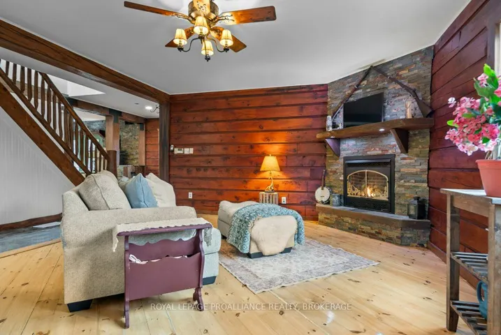 +"PublicRemarks": "Welcome to your private retreat in beautiful Sharbot Lake! This stunning 4-bedroom, 3-bathroom log home sits proudly on 10 picturesque acres surrounded by mature trees and natural scenery. Filled with rustic charm and unique character, this two-storey home offers warm wood tones, inviting living spaces, and a true sense of tranquility. The main floor features a spacious layout ideal for family living and entertaining, including a large sunroom, open concept kitchen and dining area and a cozy living room. Upstairs, you'll find well thought out finishings with large windows, natural wood flooring and 4 spacious bedrooms with plenty of space for guests or a growing family. The primary suite is equipped with an ensuite bath. The walkout basement is unfinished and ready for your personal touch: create a family room, workshop, or additional living space to suit your needs. Outside, the level lot provides plenty of room to explore, garden, or simply enjoy the quiet countryside. For those seeking even more space or investment potential, there's an option to purchase two additional adjoining parcels, a 10-acre and a 15-acre lot, offering endless opportunities for expansion, recreation, or future development. Located just a short drive to the village of Sharbot Lake with access to schools, shopping, and the lake itself, this property combines rural serenity with everyday convenience. * OPTION TO PURCHASE ADDITIONAL 10 and/or 15 ACRE ADJOINING PARCELS*"