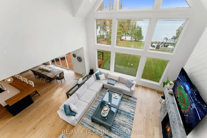 +"PublicRemarks": "Introducing Elysian Peaks - a breathtaking custom waterfront estate. Perfectly positioned on 104 feet of pristine Balsam Lake shoreline, this residence blends architectural excellence, timeless craftsmanship, and lakeside luxury across nearly 6,000 sq. ft. of finished living space. Built in 2021, the home features soaring cathedral ceilings, an open-concept layout, and expansive windows framing sweeping lake views. The chef's kitchen with premium appliances flows into the dining area and dramatic two-story great room centered around a stunning stone fireplace - a space that embodies warmth and sophistication. Offering 6 bedrooms and 7 bathrooms, every guest is treated to privacy and comfort. The main floor includes the primary suite with a private lake-view balcony, 5-piece ensuite, and walk-in closet, plus two guest bedrooms, one with a private ensuite, and a large laundry/mudroom with access to the ultimate triple-car "dream garage" - complete with a car hoist, organizational shelving, custom cabinetry, and ample room for all your toys. The second floor showcases two additional bedrooms, each with private ensuites and balconies, set on opposite wings of the home and connected by an elegant catwalk-style walkway overlooking the main living area. The walkout lower level is an entertainer's dream with a full wet bar, family and gym areas, two guest bedrooms, two bathrooms, and secondary garage access. Outside, enjoy a firepit lounge, hot tub, and powered concrete pad ready for a future double dry-slip boathouse, along with a private dock, sandy-bottom waterfront, and gorgeous lake views. Additional features include generator backup, heated basement floors, drilled well, in-ground sprinklers, and high-speed internet. Elysian Peaks redefines modern waterfront living on Balsam Lake"