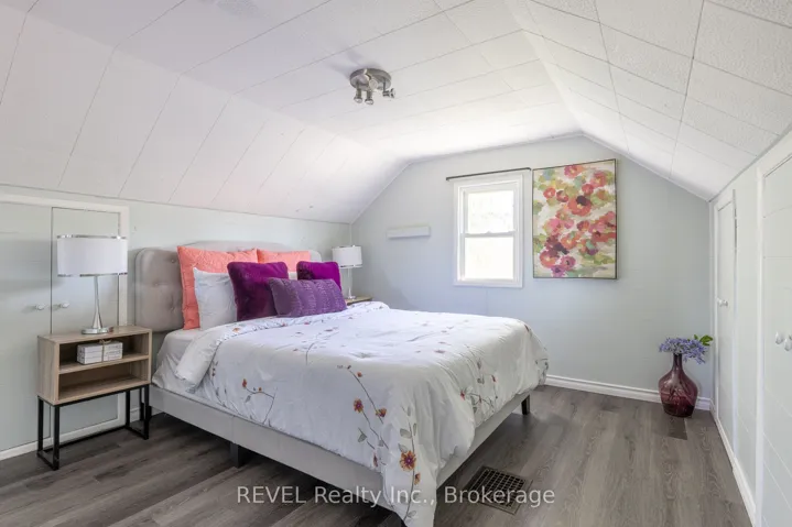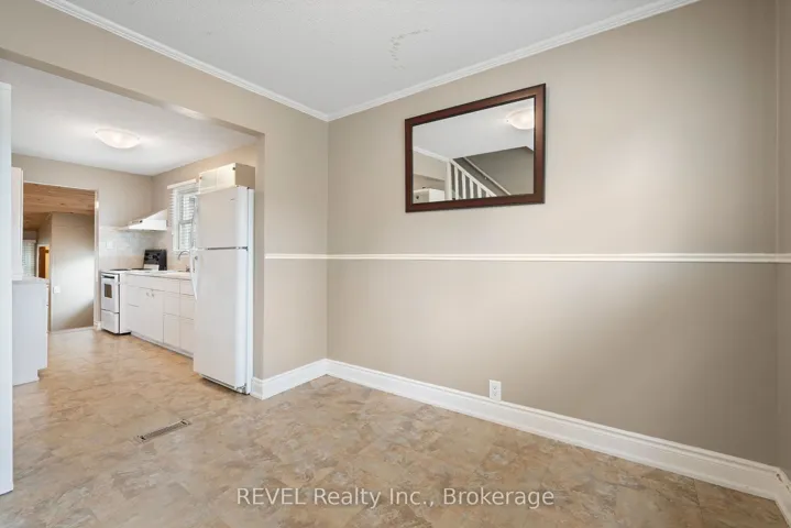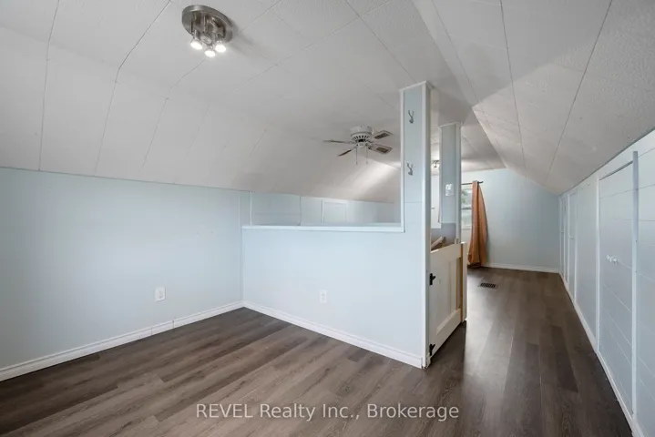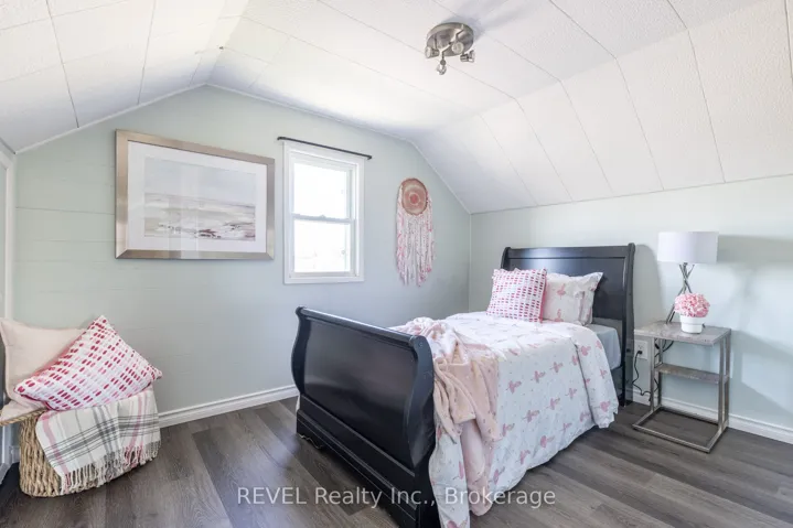 +"PublicRemarks": "1.5 storey, 3 bed, 1 bath home is situated on a quiet street in Thorold. The home is bright, tastefully finished and features a spacious den that could be an additional bedroom, galley kitchen open to dining area, an updated 4pc bath and a main floor bedroom with built-ins. The back Family Room gives off cottage vibes with its wood plank ceilings, pot lights, corner stone wall & rustic wooden mantle behind the cozy gas fireplace. Upstairs features an adorable bedroom space that is currently being used loft style but could be used for so many options. The basement with laundry provides additional storage. Backyard fully fenced."