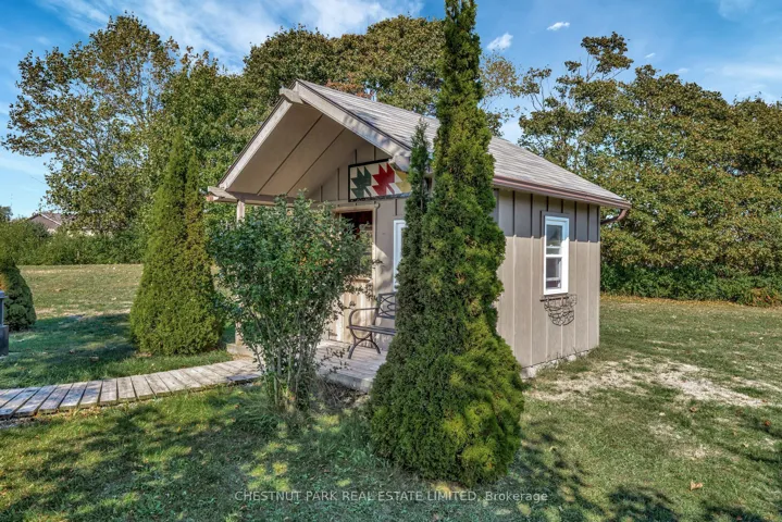 +"PublicRemarks": "Set on one of the most picturesque roads, this inviting 3 bedroom, 1.5 bath home offers a perfect blend of comfort, character & modern convenience. Overlooking neighbouring vineyards and glimpses of Lake Ontario, it embodies County living. Inside, the home is airy and bright. The spacious open-concept kitchen is beautifully updated with quartz countertops, stainless steel appliances, and sleek cabinetry that combines function with style. Updated floors add a wonderful warmth to the over all look and feel of the home. This home is perfect for family living and lively gatherings. At the back of the home, the vaulted sun room is a true highlight, a bright space where natural light pours in. Whether enjoyed as a morning coffee nook, reading spot, or evening retreat, it connects beautifully to the surrounding gardens. The upper level features three comfortable bedrooms and an updated bath, while the finished lower level provides a generous bonus space currently used as a games room. Outside, 1.5 acres of lush lawns and thoughtfully planted perennial gardens surround the home, creating a private and serene setting. A charming gazebo and full-length front porch invite you to sit back and enjoy the sweeping vineyard and lake views. Tucked among the trees, a heated artists bunkie offers endless possibilities. The double-car garage provides ample room for vehicles and storage. Recent upgrades include a durable metal roof, new natural gas furnace with air conditioning, two gas fireplaces, water softener, reverse osmosis with UV system, a standby generator, and a Dog Watch invisible fencing around the property. Perfectly located just five minutes from the vibrant village of Wellington, you'll find restaurants, wineries, and shops close at hand. Public beaches are only a short drive away, making it easy to enjoy everything the County has to offer. If you've been dreaming of country living where natural beauty meets modern comfort, this property is ready to welcome you home."