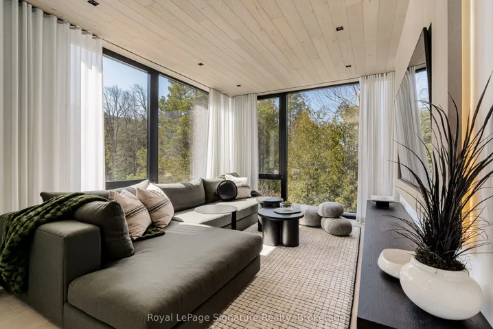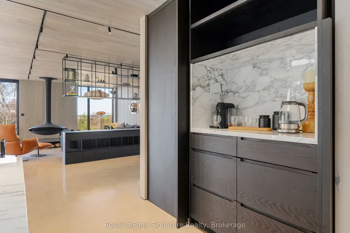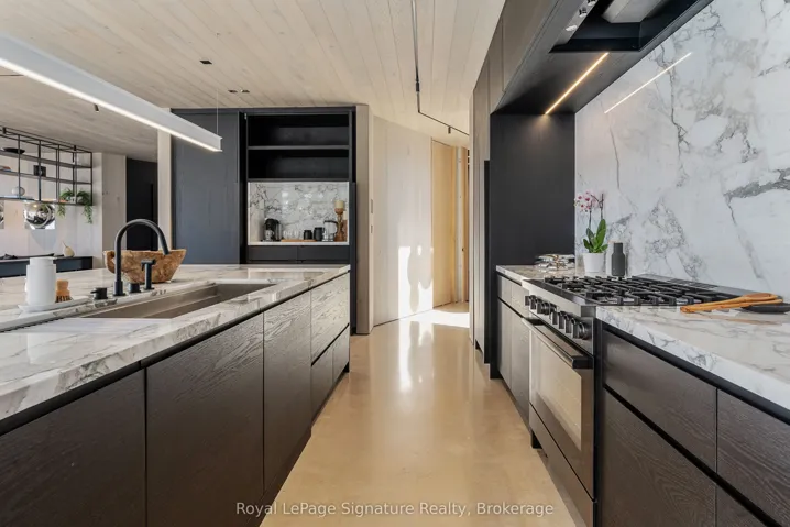 +"PublicRemarks": "Welcome to 120 Sebastian Street - a showpiece of modern architecture and refined craftsmanship, designed by Foreshew Design Associates and finished by The Local Studio. Just steps from Georgian Bay & Georgian Peaks Ski Club, this four-bedroom, 3.5-bath home spans approximately 3,500 sq. ft. of thoughtfully curated living space, seamlessly blending high design with the relaxed elegance of Southern Georgian Bay living. Radiant heated polished concrete floors flow through the open-concept main level, where the living and dining area is anchored by a floating wood-burning fireplace and custom metal shelving. Oversized glass pocket doors with motorized screens connect the indoors to the covered patio - perfect for four-season entertaining. Movie nights reach new heights with a 12-foot motorized drop-down projector screen and hidden projector, transforming the space into a private cinema with stunning views of Georgian Bay. The custom Chervin kitchen features marble counters and backsplash, Bosch and Jenn Air appliances, dual Fisher & Paykel drawer dishwashers, a hidden coffee station, and a concealed walk-in pantry with custom metal shelving - all designed for form and function. Upstairs, the primary suite is a serene retreat with panoramic views of Georgian Bay, a microcement finished ensuite with integrated soaker tub and custom double vanity. One bedroom offers custom triple bunk beds and a centre-pivot arched door, adding a playful architectural touch. Two additional bedrooms and spa-inspired bathrooms provide space and comfort for family or guests. Every detail has been meticulously designed - from the Lutron smart home system and snow-melt driveway and walkway to the Drutex triple-pane windows, metal roof, and radiant in-floor heating throughout the main level and garage. The heated garage with built-ins, bar fridge, and EV charger wiring extends both convenience and style. A rare blend of luxury, design, and Georgian Bay living - just steps from the slopes."