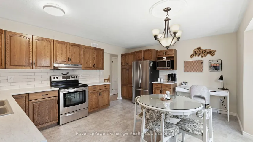 +"PublicRemarks": "Welcome to this raised bungalow perfectly positioned with a breathtaking view of Ainsdale Golf Course - truly a golfer's dream! Enjoy the peaceful feel of country living while being just minutes from all the conveniences of Kincardine. This home has seen many quality updates, including a 2022 addition extending the front foyer & garage, along with new siding, soffit, and fascia. A 2024 heat pump provides efficient heating and cooling, backed up by a propane furnace for peace of mind. The impressive 28' x 32' attached garage is ideal for hobbyists or car enthusiasts, featuring a concrete floor, hydro, propane heat, insulation, and plenty of height for a hoist. The large backyard offers exceptional privacy, bordered by hedges on the east and west sides and evergreens at the rear. Enjoy outdoor living on the upper deck or lower patio overlooking the peaceful setting. Inside you will find nearly 2800 finished sqft! The main floor offers a bright living room with large windows framing the golf-course view, a dining room, and an updated kitchen with modern countertops and backsplash completed in 2021. With new trim throughout, this level also includes three bedrooms, with the primary featuring a custom-tiled ensuite, plus an additional four-piece guest bath. The finished basement provides excellent extra space with a spacious family room with propane fireplace, a fourth bedroom, a two-piece bath, toy room, and mechanical/storage room. The roof was replaced approximately in 2015, most windows were updated in 2018/2019, and the exterior doors were upgraded in 2022. A wonderful property offering space, privacy, comfort, and an exceptional view - the best of both country and town living!"