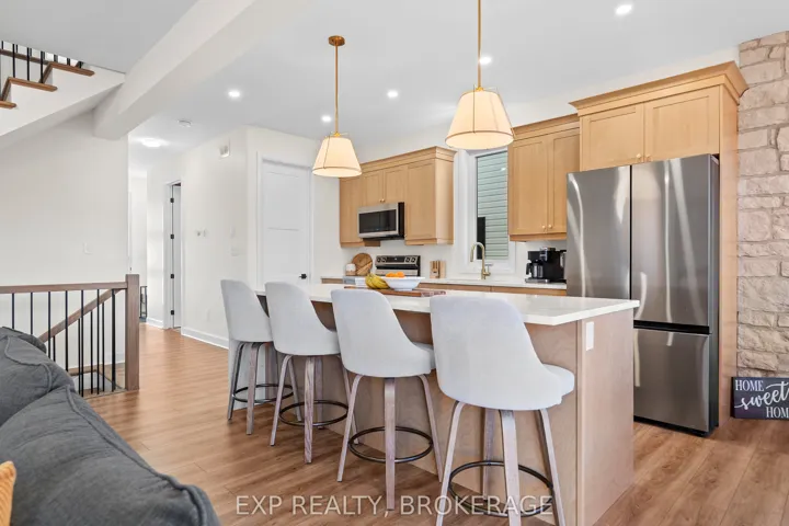 +"PublicRemarks": "This 1,800 sq/ft 2-storey home is loaded with upgrades and set on a generous lot, ideal for a growing family. The modern kitchen features a quartz waterfall island, extended cabinetry, and high-end finishes. The dining area showcases a stone feature wall that complements the floor-to-ceiling stone fireplace in the living room. Enjoy 9-ft ceilings on both the main level and basement, along with 8-ft doors throughout. The upper level offers spacious, well-designed bedrooms. The mostly finished basement includes a large rec room and wet bar, with the bathroom ready for your finishing touch. This home is a perfect blend of style, functionality, and quality craftsmanship-this home truly stands out. Now is your opportunity to own this stunning custom-built home in Odessa - conveniently located on the 401 corridor just east of the Town of Greater Napanee. Schedule your private showing today."