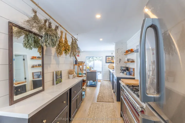 +"PublicRemarks": "Charming Renovated Bunga-Loft for Lease in Huntsville. Nestled on a private, level 1.3-acre lot surrounded by majestic pine trees, sits this beautifully renovated Bunga-Loft. Inside, you'll find 2 spacious bedrooms and 1 stylish bathroom, all within a bright open-concept layout filled with natural light from large windows framing the scenic views. The home features luxury vinyl flooring throughout, a custom kitchen with quartz countertops and high-end appliances, and a modern bathroom complete with a glass-enclosed shower and marble-topped vanity. Outside, enjoy the peace and privacy of mature forest surroundings, a detached oversized double garage, and ample level land - ideal for outdoor living. Located just minutes from downtown Huntsville, the hospital, and local schools. Best of all, you'll be just moments away from Arrowhead Provincial Park, one of Huntsville's most beloved natural attractions. This property is available furnished or unfurnished - perfect for those seeking a stylish and serene place to call home for a while."
