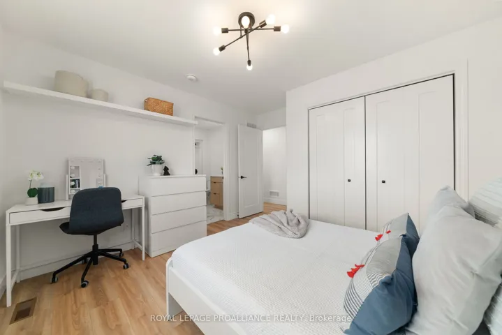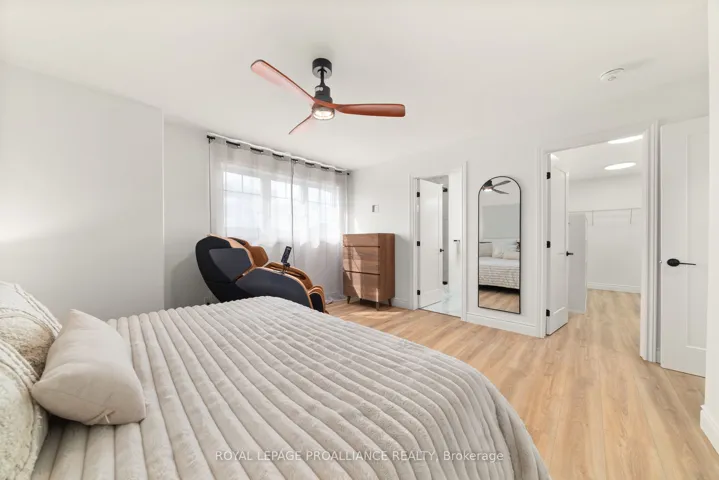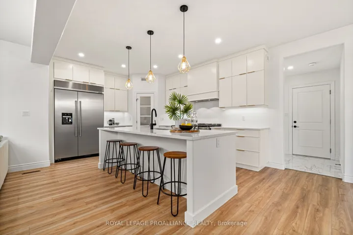 +"PublicRemarks": "Welcome to refined living in this custom built beauty @ 18 Raycroft Drive in Belleville's Settler's Ridge. Situated four blocks from the park on an interior street resides this perfectly planned design where family function meets upscale living. Classic marble look porcelain tiled flooring invites you from the attached double garage into the large mudroom with coat closet storage & powder room or enter via the grand front foyer leading to the impressive living & entertaining area. This modified kitchen plan provides chic mini shaker style cabinetry to ceiling in timeless white with complimenting gold hardware, ideal corner pantry, veined quartz countertops + high end appliances include the elongated Kitchen Aid refrigerator, gas range & built-in microwave with convection feature. The massive detached island overlooks the spacious dining & lovely living area with pot lighting along the vaulted ceiling, fabulous natural light through the two added transom windows & three sided fireplace feature. Trending warm toned flooring throughout this sophisticated space & up the stairs where you will find three generously sized bedrooms, each with their own dedicated ensuite. The primary highlights a massive walk-in closet & impressive ensuite with double vanity sinks, make-up bar, step in glass & tiled shower + separate soaking tub. The function continues with second floor laundry here. Additional square feet in the fully finished basement providing a large pot lit recreation room with corner gas fireplace, 4th bedroom, a 5th bathroom & fabulous storage in the well maintained utility room with convenient laundry sink. Many exterior offerings include the all brick & stucco in timeless tones & perfectly tucked in private rear deck with gas bbq & fire pit line overseeing the rear yard. A thoughtfully remodelled family home offering something exciting for everyone @ 18 Raycroft Drive ~ Enjoy the video & 3D tour ~"