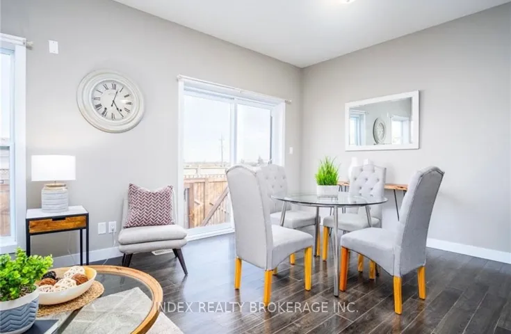 +"PublicRemarks": "Experience comfort and convenience in this beautiful 3-bedroom, 3-bath end-unit townhouse, perfectly situated in a desirable neighbourhood. Just minutes from major highways, commuting is effortless. Step inside to a welcoming foyer that leads to a bright, open-concept main floor. The modern kitchen features granite countertops, stainless steel appliances and a breakfast bar-ideal for meal prep and entertaining. The spacious living and dining areas offer the perfect setting for relaxation and gatherings, while a convenient 2-piece powder room completes the level. Upstairs, you'll find three generously sized bedrooms, including a primary suite with a private ensuite. A second full bathroom provides added convenience. The unfinished basement offers endless possibilities for storage. Outside, enjoy a rare, spacious backyard with a small deck and partial fencing for added privacy. don't miss your chance to live in this stylish and well-located home!"