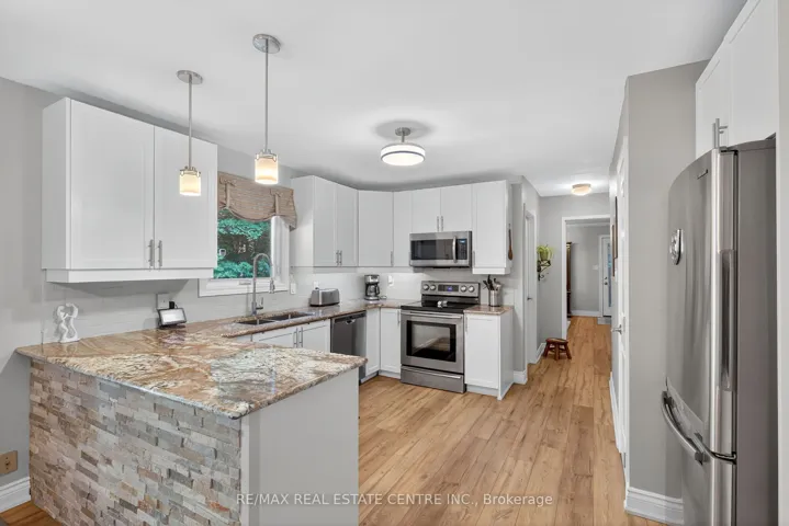 +"PublicRemarks": "Discover this stunning bungalow nestled on a quiet dead-end country road, set on a breathtaking 1.2-acre lot with serene views and the peaceful sound of Sheldon Creek running behind the property. The main floor offers a spacious living room, formal dining room, and an updated kitchen featuring granite countertops and a walk-in pantry. Enjoy meals in the bright eat-in area, or step outside to the large 2022-built deck perfect for relaxing and entertaining. The home features 3 generously sized bedrooms, with the primary suite boasting a private 3-piece ensuite. Luxury vinyl flooring runs throughout the main level for a modern, low-maintenance finish. The lower level is ideal for both relaxing and entertaining, with a large recreation room, a walk-out to the patio and hot tub area (hot tub included as is), plus abundant storage. There is also a roughed-in sauna ready for your personal touch. Recent Updates & Features: Roof (2019)Windows (2010)Furnace & A/C (2015)Water Softener (2019)Ultra Violet System (2015)Hot Water Tank (Owned)Gas Stove & BBQ Line (2020)New Well Pump (2021)Whether you're looking to raise a family, downsize, or enjoy a peaceful retirement, this property offers the perfect blend of country charm and modern comfort. Enjoy evening walks on the Quiet Dead End Country Rd. Enjoy breakfast on an elevated deck surrounded by a canopy of trees and relax to the sound of the creek. Finished walk out basement has in-law potential. Side entrance from den to partially fenced back yard!"