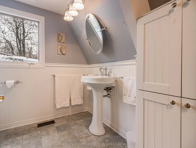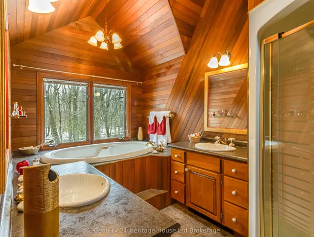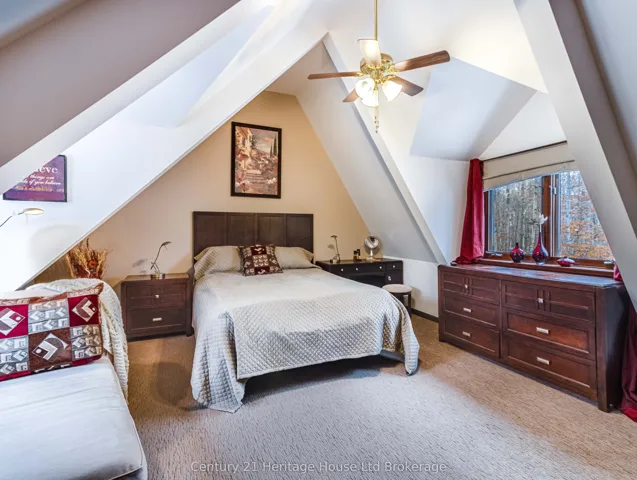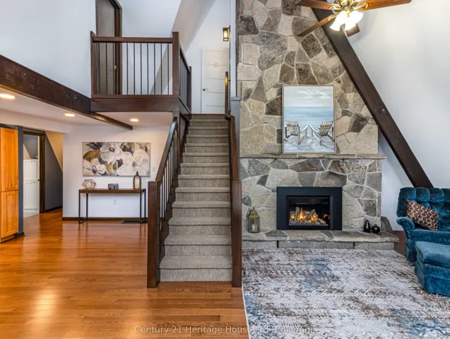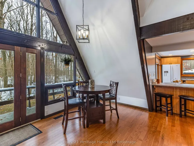 +"PublicRemarks": "Country roads leading you home. Nestled and tucked away on a wooded 2.7 acres just south of Woodstock in Oxford Centre, this property offers the perfect blend of serenity and style. Along the tree lined winding landway, you'll find two small fish ponds and a spacious campfire area-an idyllic setting for peaceful mornings or evenings spent under the stars.The property features a unique and beautiful detached A-frame home, showcasing a soaring two-story stone fireplace, wraparound decks, and open-concept main floor living. The bright kitchen with the floor to ceiling windows flows nicely into the living area, perfect for entertaining. A separate formal dining room with gleaming hardwood floors also found throughout the main level. The main floor is complemented with an additional office space with direct exterior access making this the perfect spot for those who work from home. An updated bathroom completes the main floor with private views of nature in every direction. Upstairs, the impressive primary retreat includes a second fireplace, a six-piece ensuite, and a walk-in closet along with an additional bedroom . Both rooms feature unique custom architectural roof lines The lower level offers a spacious family room complete with a wet bar, wood burning fireplace, a 3rd bedroom, and a den-ideal for in-law potential-with a walk-up basement leading to the oversized double-car attached garage. Outside, you'll find a large 25' x 40' Quonset building with an RV hookup, a wraparound laneway with ample parking, tons of storage, and unmatched privacy. Don't miss your chance to experience this one-of-a-kind country retreat"