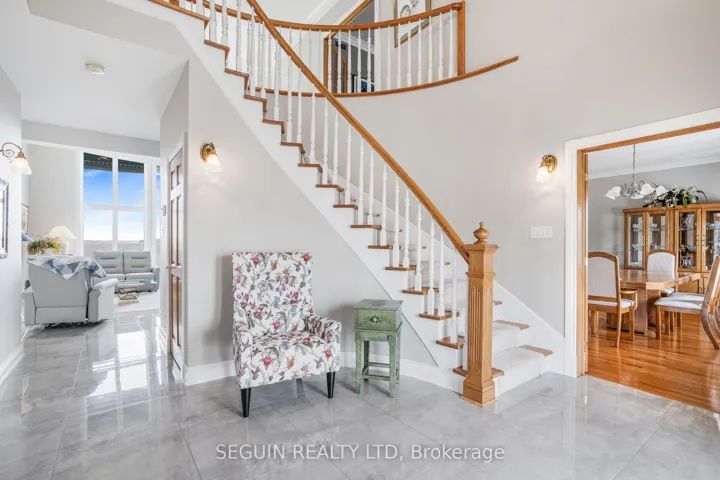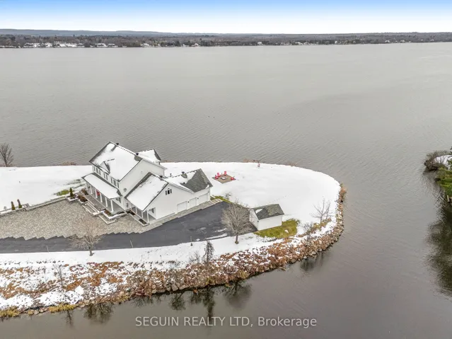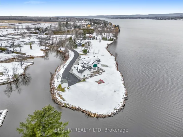 +"PublicRemarks": "A ONCE IN A LIFETIME OPPORTUNITY TO OWN A WATERFRONT PROPERTY LIKE THIS IN THE AREA! Introducing a truly rare and prestigious waterfront estate, set on a breathtaking 1.93-acre private peninsula with over 360 feet of pristine shoreline. Perfectly positioned to capture uninterrupted panoramic views of the Ottawa River, this property offers an exclusive lifestyle of serenity, sophistication, and natural grandeur. Every element of this residence has been designed to inspire, with elegant architectural details, 9-foot ceilings throughout, and a show-stopping 19-foot cathedral ceiling in the grand family room. Floor-to-ceiling windows frame the water like fine art. while a double-sided fireplace adds warmth and refinement to the space. The heart of the home is a stunning open-concept kitchen featuring an oversized island and top-of-the-line appliances, perfectly suited for everyday living. Enjoy two spacious living rooms, ideal for both formal entertaining and relaxed family gatherings, as well as a dedicated home office featuring breathtaking views of the river. The ultimate work-from-home sanctuary. The main floor also includes a 2-piece powder room, a separate laundry room, and direct access to a triple car garage, with a private entry to the fully finished basement. Upstairs, the luxurious master bedroom offers a spa-inspired ensuite with radiant flooring, a fireplace and an expansive walk-in closet that will exceed expectations. Two additional well-appointed bedrooms and a stylish bathroom complete the upper level. Outside, the property is a private oasis, with professionally landscaped grounds and a full sprinkler system to keep the lush surroundings pristine with ease. For boating enthusiasts, a secluded private bay offers protected docking and effortless access to the water a rare and coveted feature on this stretch of the river. This is more than a home; it's a legacy property, a private sanctuary, and a showcase of refined riverside living."