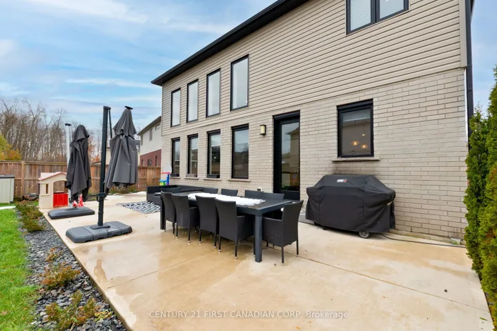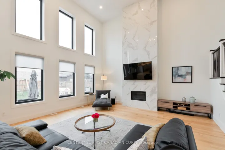 +"PublicRemarks": "Welcome to this stunning custom Everleigh Homes Inc. built 2-storey home offering over 4,250 sq. ft. of complete finished living space on a quite cul-de-sac designed with families in mind, this property features 4 spacious bedrooms and 3.5 full bathrooms, blending luxury, comfort, and functionality. The main level showcases a breathtaking great room with 20-foot ceilings, bright, oversized windows, and a floor-to-ceiling ceramic tile fireplace that creates a dramatic yet inviting centre piece. The open-concept kitchen offers modern finishes and plenty of space for entertaining. Upstairs, a large second floor laundry room is adjacent to the primary suite which features a spa-inspired ensuite and walk-in closet, while the fully finished basement includes a large Rec-room and a full bathroom-perfect for guests or a home gym. Sitting on a massive corner lot, the home boasts a large backyard ideal for kids and family gatherings. Located within the new St. Gabriel's school district and walking distance to Sir Arthur Currie Public School, this property offers the best in location, space, and quality craftsmanship. Experience luxury living in one of north London's most desirable neighbourhoods-this home truly has it all!"