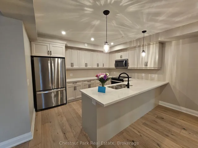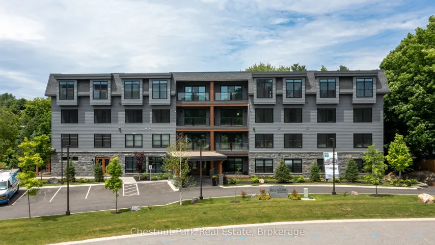 +"PublicRemarks": "Welcome to "the Rebecca" unit 301 and the only one of this plan left in the building! Both bedrooms and living area face directly onto the river, providing you with a gorgeous waterfront view. This luxurious suite welcomes with hardwood floors of your choosing and bright potlights elevating the space. A high-end kitchen with generous storage, quartz countertops, and 5 upgraded stainless appliances will be the heart of this home. Tucked away is the private primary suite with a walk-in closet and ensuite bathroom. Located at Rivers Edge, a new boutique condo building of only 24 units, lovingly located on the Muskoka River and walking trails that bring you to downtown within 15 minutes or an even shorter walk to the beautiful Bracebridge Bay Park. Amenities of Rivers Edge promise an easy and enjoyable lifestyle. Just to list a few, there is underground parking, storage lockers, a main floor fitness room, luxurious party room, screened porch Muskoka room, riverside stone patio, bbqs, garbage chutes on every floor, mail delivery and pick up right in the lobby and a secure front entry door with buzzer system. Boatslips can be purchased as well for a true cottage experience. Everything you want for a life of convenience and well-being in Muskoka. Photos are of the identical suite below. Colour and finish choices still available."