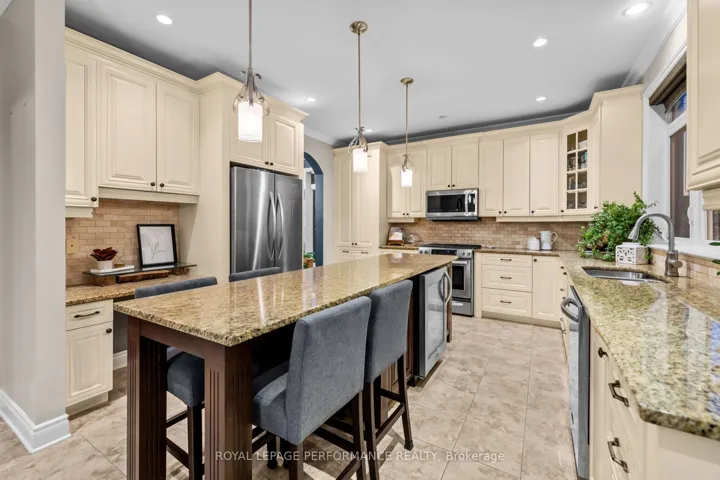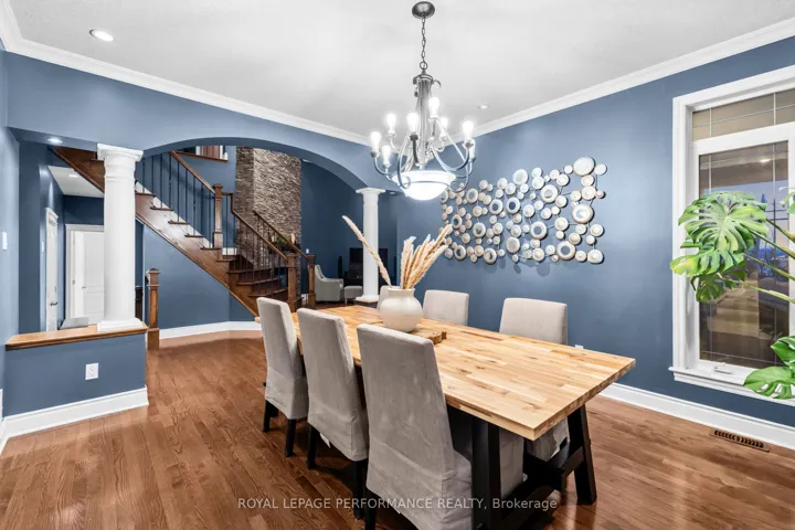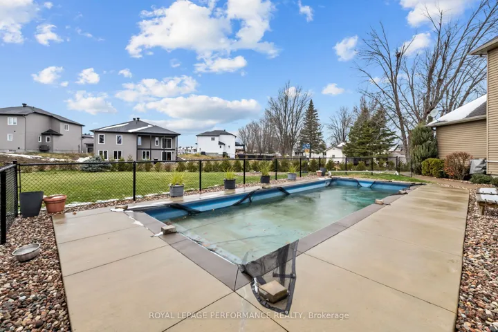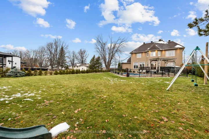+"PublicRemarks": "Welcome to this stunning 4-bedroom, 3-bathroom home offering over 3,200 sq/ft of refined living space, set on a one-of-a-kind lot fronting onto breathtaking sunset views over the river. Featuring 9 ft ceilings throughout and soaring vaulted ceilings up to 14 ft, this home blends grand architecture with warm, timeless finishes. A spacious foyer opens into an inviting living room highlighted by a striking stone fireplace extending to the ceiling. The dream kitchen boasts granite countertops, ample cabinetry, and direct access to the outdoors-perfect for entertaining. Enjoy two dining areas: a bright breakfast/dining nook with patio access, plus a formal dining room featuring charming columns. A versatile room adds flexibility for a home office, playroom, or quiet retreat overlooking your backyard oasis. The ideal family layout continues upstairs with four generous bedrooms. The primary suite includes a luxurious 5-piece ensuite & makeup vanity, and a large walk-in closet. Three additional well-sized bedrooms and a full bath complete this level. The partially finished lower level offers incredible potential, complete with a rough-in for an additional bathroom-ready to customize. Your private backyard features a 33' x 12' heated saltwater pool, pergola, interlock patio, firepit area, storage shed, and plenty of green space for kids to play. Hedges add privacy, while the front of the home showcases unmatched curb appeal with its grand covered porch, double-entrance oversized driveway, and extended 2-car garage. Bonus: a full volleyball court for summer fun. All municipal services, outdoor generator outlet, hardwood and tile throughout, exceptional layout, and views that make every sunset feel like home."