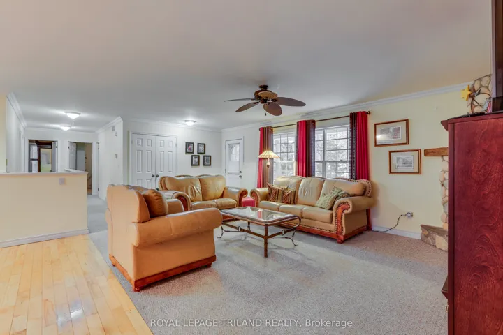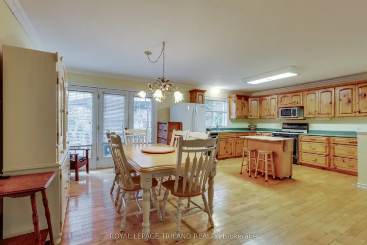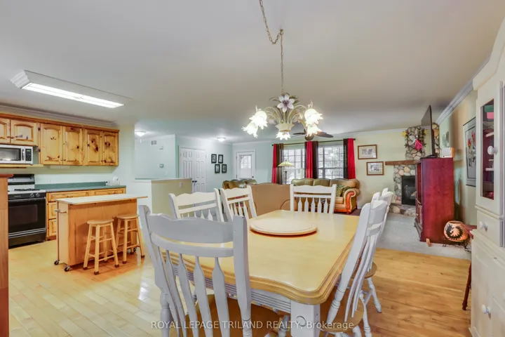 +"PublicRemarks": "A RARE FIND! Welcome to 9909 Northville Cres. This home offers both space and serenity on a 1.5 Acre treed lot just minutes from Lake Huron, local beaches, golf and Pinery Provincial Park. This 3 Bedroom, 2 Bathroom home offers 1440 sq. ft of above grade living space, an oversized 25' x 25' attached double garage, and ample room for parking boats, RV's etc. Step inside to an inviting open-concept living area, highlighted by a beautiful, cozy fireplace and large windows that frame peaceful views of the mature property. The kitchen features custom pine cabinetry and flows easily into the dining room, which opens to a roomy back deck-perfect for bbqing, relaxing, or hosting summer gatherings. The large primary bedroom includes a private ensuite, while 2 additional bedrooms offer flexibility for family, office space of guests. Convenient main floor laundry adds to the home's practicality. A large, partially finished basement provides additional living or storage potential. Roof shingles replaced 3-4 yrs ago and eavestrough on house fitted with gutter guards. Outside hobbyists and tinkerers will appreciate the separate backyard workshop. Enjoy peaceful mornings on the large covered front porch, afternoons exploring nearby beaches and trails, and evenings soaking in the calm. Don't miss your opportunity to make this place your next home or cottage!"
