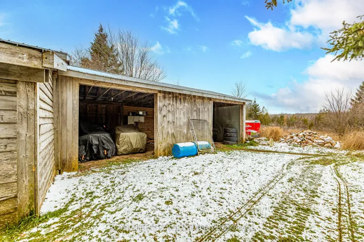 +"PublicRemarks": "It doesn't get anymore perfect than this. Beautiful country retreat featuring 7.75 private acres, a bright 2 bedroom bungalow with wrap around porch, 20 x 30 detached workshop with hydro and heat and 20 x 30 cold storage at the back of the shop for all your toys. Step inside the mudroom entrance and into the updated open concept main level living space that features a vaulted ceiling and grand floor to ceiling windows for spectacular country views. The kitchen features stainless steel appliances and centre island, the family room with tons of light has a walkout to the wrap around deck. The primary bedroom also has a walkout to the deck and his and her closets. The lower level is partially finished with framing for 3 rooms and a wood stove that is the perfect way to supplement your heat in the winter months. Outside is perfect for all nature lovers and hobby farmers. There is a chicken coop and old paddock in need of a little TLC. Roof on the home was completed in 2022 and new roof on the shop in 2018."