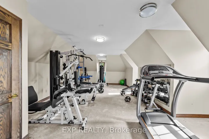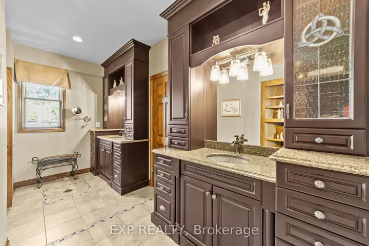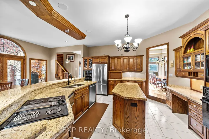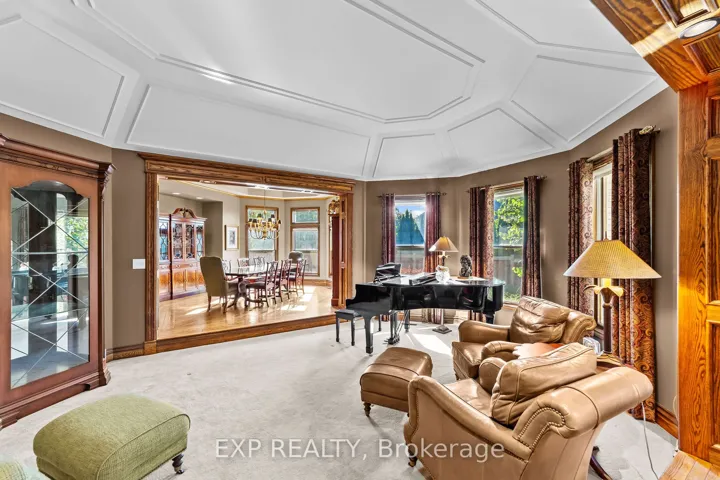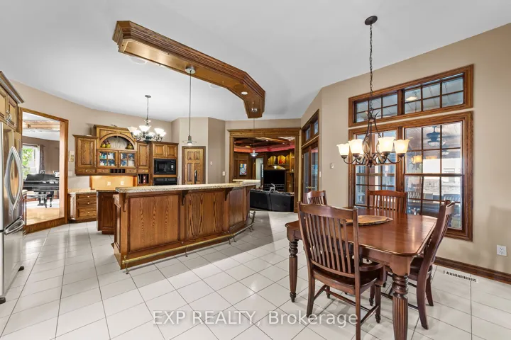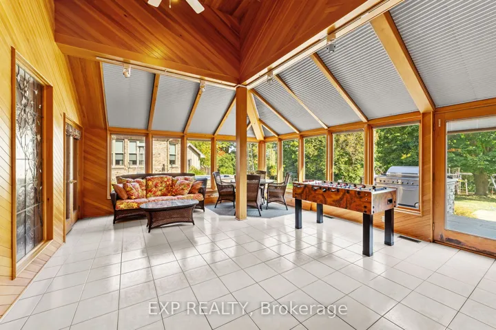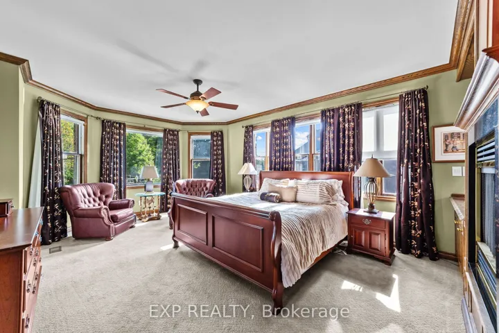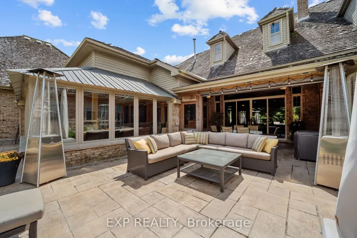 +"PublicRemarks": "Custom-built estate just under 7,000 sq. ft., this one-of-a-kind residence backs onto the Medway River and was awarded Ontario's Custom Home of the Year upon completion. Tucked away on one of North London's most prestigious streets, the home sits on nearly an acre with a stamped horseshoe concrete drive leading to the triple car garage. Inside, timeless craftsmanship is evident with rich woodwork throughout, a formal living room with wood-lined ceilings, custom built-ins, and ambient lighting. The main floor offers four bedrooms, with two additional potential bedrooms upstairs, along with a wood-paneled office, a custom gym above the garage, and an extra family room above the billiards room. The spacious eat-in kitchen opens to a sunroom and screened patio, while heated flagstone walkways and patios flow to a fully reimagined backyard oasis. The exterior was completely redesigned with professional landscaping, custom stone sills, outdoor lighting, power screens, a multi-sport court that converts to a winter rink, a custom all-season hot tub spa, and an outdoor bathroom with oversized equipment room designed for a future infinity pool. Bellissimo light fixtures, a 19-zone irrigation system, and invisible fencing complete the grounds. The primary suite features its own living room and private courtyard, while all bathrooms were fully redesigned between 2012-2014 with luxurious finishes. Comfort upgrades include spray-foam insulation, a newer HVAC system, and a state-of-the-art Elgin Pure Water purification system. Modern technology abounds with Savant whole-home automation, Legrand touch switches, motorized roller shades, a 12-camera security system, and an integrated outdoor sound system.Blending award-winning design with extensive updates, this estate offers unmatched privacy, sophistication, and lifestyle truly one of Londons most distinguished residences."