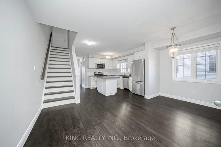 +"PublicRemarks": "Welcome to this bright and spacious 3-bedroom, 2-bath townhouse located in one of Kitchener's most sought-after neighborhoods. The main floor offers an upgraded kitchen with hard surface countertops, tiled backsplash, stainless steel appliances, ample cabinet space, and a convenient pantry under the stairs. The open dining area flows into a comfortable living room with a walkout to a sun deck, which also features additional storage underneath. This level also includes in-suite laundry and a 2-piece bathroom. Upstairs, you'll find three generous bedrooms and a well-appointed 4-piece bathroom. Close to all major amenities, transit, shopping, and schools. This home is move-in ready and won't last long!"