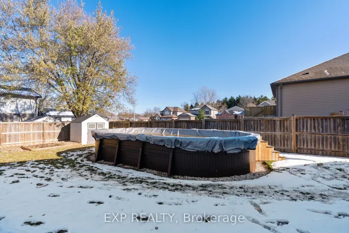 +"PublicRemarks": "Welcome to this beautiful Timothy custom-built home located in the highly sought-after Saintsbury Estates in Lucan. Built when lots were larger, this property sits on an oversized lot crafted by a high-end builder and designed with young families in mind. Inside, the spacious open-concept main floor features tile flooring that flows through the foyer, dining area, and kitchen. The kitchen offers exceptional functionality with generous counter space, a pantry, and plenty of extra cabinetry. Bright natural light fills the dining room, complete with patio doors leading to the backyard deck. The main floor continues with a warm and inviting living room showcasing a large front window, a nicely sized laundry room with recent shelving upgrades, a convenient 2-piece bathroom, and access to the attached two-car garage. Upstairs, you'll find two comfortable bedrooms and a large cheater bathroom leading to the impressive primary bedroom, which includes a walk-in closet. The basement is mostly finished, offering a cozy recreation room with brand-new carpet and a utility/storage area with ample space. Outside, the fully fenced, oversized backyard is perfect for family fun and entertaining. Enjoy the deck, relax in the hot tub, or cool off in the 13x25 oval above-ground pool featuring a stylish wood exterior. A mounted TV near the deck lets you catch the game from the pool or hot tub-your own personal outdoor oasis. This home has wonderful curb appeal with a double-wide concrete driveway and a beautifully landscaped front yard. You'll love living in Lucan, just 20 minutes from London and home to a new grocery store, restaurants, shopping, and outstanding community amenities, including soccer fields, baseball diamonds, a community centre, and a hockey arena. Book your showing today before this exceptional home in Lucan's most desirable subdivision is gone!"