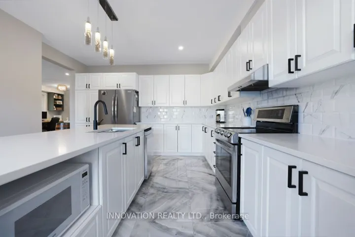 +"PublicRemarks": "PRICED TO SELL! Approx 2400 sq ft ABOVE GRADE. Imagine living in this super spacious home with main floor home office space! This home offers a very flexible floor plan for family living & entertaining. Soaring 9' ceilings on the main floor highlight the bright and airy feel throughout. The main floor den features custom cabinetry, perfect for work at home or as a homework station. New quartz counters in the HUGE kitchen with French doors to the raised deck; great for barbecues. Feed the family or let your guests enjoy a glass of wine & conversation at the huge center island while you prepare a meal. The great room features an architecturally inspired ceiling with French doors to the other side of the deck. The over-sized family room features a floor-to-ceiling tiled gas fireplace. Brand new hardwood flooring was installed on the upper levels. The primary suite is super spacious with spa-like ensuite. There is a jack 'n jill bathroom to for the secondary bedrooms or turn one side back into the laundry area! The garage is insulated and heated to serve as a workshop, if you like! The lower level has over-sized windows with a rough-in for another bathroom. Immediate occupancy is available!"
