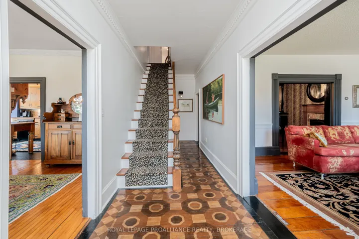 +"PublicRemarks": "Welcome to Silverstone House - Where Historic Grandeur Meets Business Opportunity. Tired of paying business rent? Zoned for both residential and commercial use, this stately stone home offers parking for up to nine vehicles outside the adjoining office-making it ideal for live/work arrangements or income-generating opportunities. Timeless limestone architecture blends seamlessly with bold, modern design in this one-of-a-kind Kingston landmark. Built in 1825 by the city's first mayor as a stagecoach inn, Silverstone House has been meticulously transformed over the past 30 years into an elegant and eclectic designer residence. Behind its classic facade, the interior surprises and delights: hand-painted finishes, intricate tilework, slate kitchen counters, and sun-filled rooms-remarkably bright for a limestone structure. Thirty-inch-thick stone walls provide exceptional soundproofing, creating a quiet retreat with close proximity to the 401 and city central. Host and unwind in your own private oasis featuring a spacious screened porch and beautifully walled perennial gardens-perfect for relaxed, bug-free entertaining. The home's former ballroom now serves as a grand primary suite, while the original men's bar has been reimagined as a gracious dining room. A carved pineapple fireplace surround-a rare Canadian artifact-anchors the welcoming living room, and a vaulted third-floor party room adds a final touch of drama and versatility. The standout feature: a 1,487 sq. ft. separately accessed commercial office space spanning two floors. Ideal for studios, clinics, creative workspaces, or rental income, it could also be converted back to a two-car garage with living quarters above. From its historic charm to its commercial flexibility, Silverstone House is a rare treasure-where Kingston's rich past meets stylish modern living."