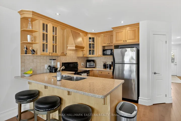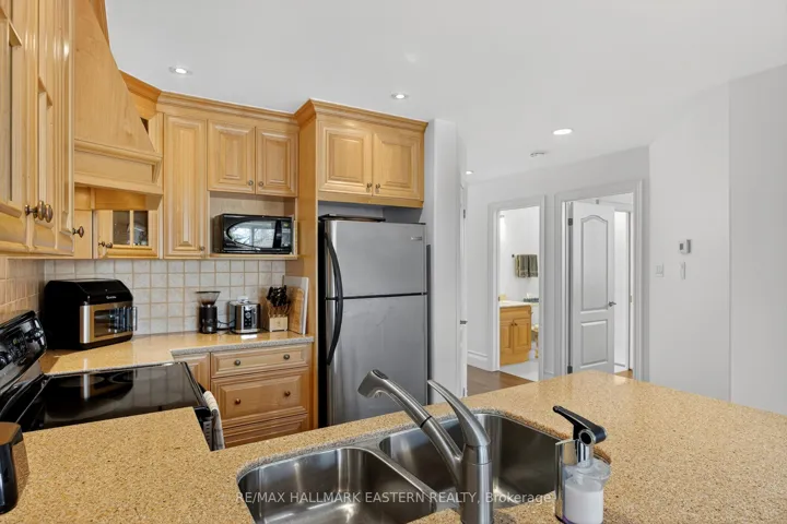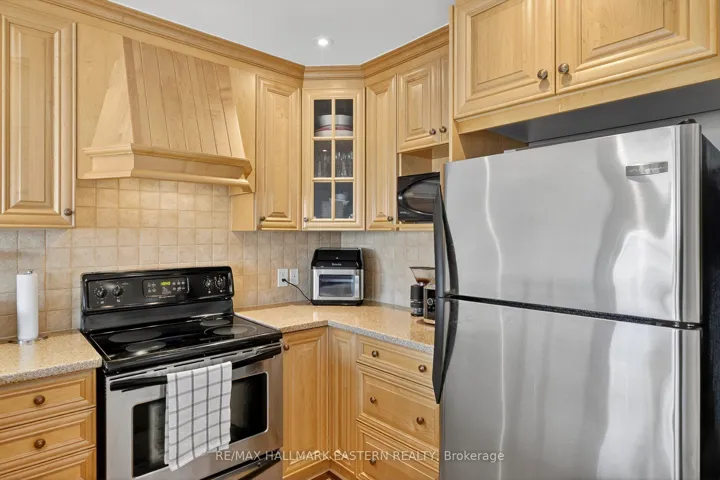 +"PublicRemarks": "Beautifully renovated west-end end-unit condo offering turnkey, low-maintenance living in one of Peterborough's most desirable neighbourhoods. This bright and modern bungalow-style unit features a fully updated main floor with 2 bedrooms, a brand-new bathroom with a walk-in glass shower, and convenient main-floor laundry with upgraded tile flooring. The home showcases all-new 3/4-inch maple hardwood floors, custom trim, and an inviting open-concept living and dining area complete with a cozy gas fireplace and a walkout to a private deck overlooking mature trees and green space. The large, upgraded kitchen is perfect for cooking and entertaining, offering quality cabinetry and granite countertops. The renovated lower level adds exceptional living space with new flooring throughout, featuring a spacious bedroom, an additional bathroom, a generous rec room with a second fireplace, and a walkout to the backyard-ideal for guests, hobbies, or multi-generational living. Parking and storage are easy with an attached garage that offers direct access into the unit. This beautifully finished end-unit combines modern upgrades, privacy, and functionality in a quiet, well-maintained community close to parks, trails, shopping, and all west-end amenities."