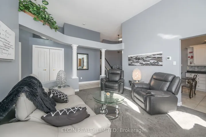 +"PublicRemarks": "Welcome to this stunning custom-built bungalow, perfectly situated on a sprawling lot just under 2 acres. The striking stonework of the exterior sets a refined tone for this elegant home, showcasing its timeless design and exceptional craftsmanship.Inside, the oversized 3-car garage offers ample space for vehicles and storage, seamlessly complementing the homes thoughtful layout. The main living area is a true showstopper, with soaring 13-foot ceilings, a built-in electric fireplace, and a walkout to the deck and spacious backyardperfect for both relaxing and entertaining.Throughout the rest of the home, 9-foot ceilings maintain a sense of openness and elegance. The chefs kitchen is designed for both beauty and functionality, featuring quartz countertops, premium built-in appliances, and a layout ideal for hosting or everyday living.The primary suite is a luxurious retreat, complete with its own walkout to the deck, offering serene views and a seamless connection to the outdoors. The spa-inspired ensuite features his-and-her sinks and exquisite finishes, adding a touch of indulgence to your daily routine.Enjoy your own privacy, land, and piece of paradise, all while staying just minutes away from major shopping areas and Highway 401. Set on a peaceful, expansive lot, this home offers a perfect blend of tranquility and convenience. Schedule your private tour today to experience this exceptional property for yourself!"