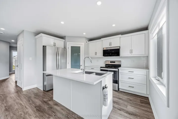 +"PublicRemarks": "Welcome to this beautifully maintained 4-year-old semi-detached 2-storey home, offering 1,736 sq. ft. of modern living space and an attached 2-car garage. Recently updated with brand-new flooring and fresh paint throughout, this home is truly move-in ready. The open-concept main floor is designed for today's lifestyle, featuring a custom Casey's Creative Kitchens design with quartz countertops. It's the perfect layout for both family living and entertaining. A convenient 2-pc bathroom plus a laundry/mudroom with inside entry to the garage complete the main level. Upstairs, the primary suite offers a private retreat with a walk-in closet and 3-pc ensuite. Two additional bedrooms and a full 4-pc bathroom provide comfort for kids, guests, or a home office setup. Outside, you'll love the deep, private backyard - a rare find that gives you plenty of room to relax, play, or plan your future outdoor projects. Location is unbeatable: under 10 minutes to Hwy 402, making commuting effortless, and just 15 minutes to Sarnia or 30 minutes to Strathroy. You are also close to schools, shopping, and a great local playground with a splash pad. A modern home, a fantastic yard, and an ideal location - everything you've been waiting for."
