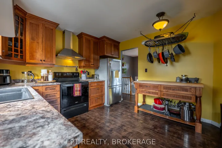 +"PublicRemarks": "Discover this move-in-ready, elevated bungalow in the heart of Gananoque-offering comfort, convenience and room to make it your own. Situated on a sunny corner lot, the home welcomes you with an interlock stone walkway leading to the front porch. Step inside to an open living and dining area where abundant natural light highlights hardwood floors, In the kitchen, a custom island provides prep space , ample cabinetry ensure practicality. Adjacent, a spacious deck spans the side of the house-ideal for summer barbecues or morning coffee-and has a gazebo for year-round outdoor enjoyment.Three generously sized bedrooms await upstairs, including a main bath with a jacuzzi tub. Downstairs, the finished basement expands your living options. A cozy movie nook offers the perfect spot for family film nights, while a separate entrance from the attached garage creates in-law suite potential. A second bath finishes off the space. New furnace, air conditioning and hot water tank give you peace of mind for seasons to come. Additional highlights: Attached garage with direct lower-level access Large deck and gazebo overlooking the corner-lot. With solid bones, modern mechanicals and flexible spaces, this Gananoque bungalow is primed for today's living-and ready for your family to enjoy! Schedule your visit and start envisioning life here!"