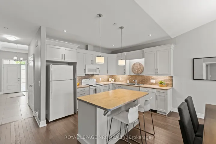 +"PublicRemarks": "Discover the perfect blend of elegance and convenience at 30 Blossom Common, a stunning 2-bedroom, 2-bathroom bungalow townhome nestled in the highly desirable Trillium Gardens community of Port Weller East. Step inside and be greeted by sophisticated design, starting with a 9-foot coffered ceiling in the entryway that leads to a bright, open-concept living space. The living room is truly remarkable, boasting soaring 11-foot vaulted ceilings that create an airy, expansive feel. Engineered hardwood floors flow seamlessly through the living, dining, and kitchen areas, making it an ideal setting for entertaining guests or peaceful relaxation. The primary suite is a private retreat, complete with a walk-in closet and a luxurious 3-piece ensuite. For ultimate ease, the main floor also includes a convenient laundry area, simplifying single-level living. Outside, a private back deck, secured by a privacy fence, awaits your morning coffee or evening unwind. The potential continues indoors with a large, unfinished basement featuring oversized windows and a rough-in for a 3rd bathroom-a blank canvas ready for you to create your ultimate dream space. An attached garage with interior access adds practicality and security. Embrace the serene, rural feel of this superb location. You are moments from Lake Ontario and the St. Catharines Marina, renowned Sunset Beach, quiet Jones Beach, the Welland Canal Parkway, Malcomson Eco Park, the Great Lakes Waterfront Trail, and Happy Rolphs Animal Farm. Countless trails, parks, fresh fruit farm stands, and world-class wine country (including nearby NOTL) are all minutes away."