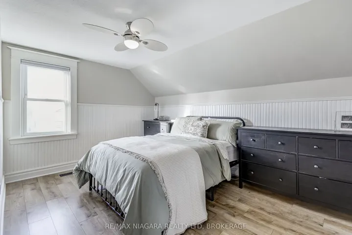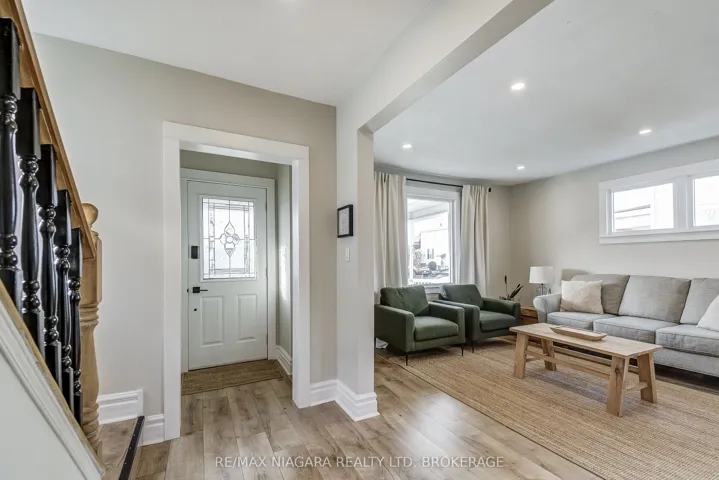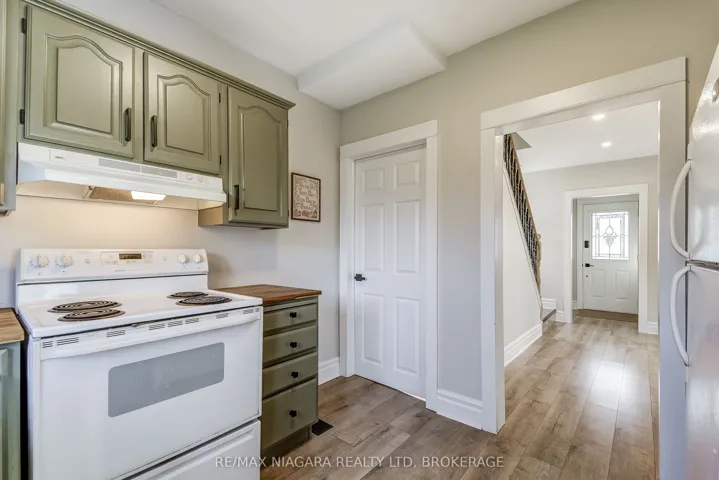 +"PublicRemarks": "An Absolute Charmer - Move-In Ready Home! Nestled on a quiet, tree-lined street, this fully renovated two-storey home perfectly blends modern updates with classic character. Distinctive craftsman-style trim adds warmth and personality, while bright, airy living spaces are highlighted by updated laminate wood flooring throughout, completely carpet-free. Pot lighting in every room enhances the modern feel, the updated kitchen features a newer sink and countertop, and a newly installed patio door from the dining room leads to a large composite deck, ideal for entertaining or relaxing outdoors. Upstairs, you'll find three good-sized bedrooms and an updated 4-piece bathroom; replacement windows and custom window coverings throughout, large storage shed, and ample yard space for a garden. Conveniently located within walking distance to the Welland River and Welland Recreational Waterway."
