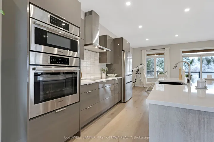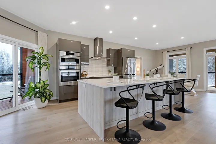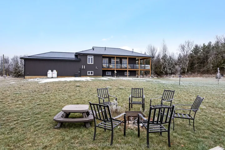 +"PublicRemarks": "Outstanding. With smooth clean lines this 2022 home offers a sophisticated presence and, its unparalleled construction creates a wealth of efficiencies. The exterior steel siding is eye catching with its attractive slate-hued finish, accented by earthy warm cedar. The design elements blend flawlessly into 3 peaceful country acres. Step inside to the sleek foyer featuring white bright décor enhanced by double closet's charcoal glass panels; elegance added by the porcelain floor and glass chandelier. Flooring thru-out 3+1 bed, 2 full bath home is porcelain tile plus, luxury vinyl plank with cork cushioning for sound absorption - you will appreciate this with every step. Ceilings 9' high, light cascades inside thru big windows and living spaces insulated for sound separation from the bedrooms. Livingroom linear propane fireplace is surrounded by showcase porcelain wall. Impeccable gourmet kitchen most welcoming with Cambria quartz countertops, custom Deslaurier cabinetry, generous breakfast bar and premium Bosch appliances including two built-in ovens. Adjoining butler's pantry and sitting area. Primary suite calming retreat with two large closets and luxurious 5-pc ensuite porcelain floor, two-sink quartz vanity, rainhead glass shower with body-spray tower and deluxe soaker tub. Two more bedrooms and well-appointed 4-pc bathroom also with porcelain floor, quartz vanity, touchscreen mirror and rainhead shower with body-spray. Lower level 8' ceilings, R22 insulation and potential for in-law suite with rough-ins for kitchen and bathroom. From lower level, direct access to double attached garage with hookup for overhead propane heater. Adding to home's ultra-modern design and commitment to quality is superior steel roof with protective membrane & R60 insulation. Steel fascia has recessed soffit lighting. High energy-efficient Kohltech windows & propane furnace. Underground hydro line from road to home. On paved township road. Cell service & hi-speed. 10 mins Perth."