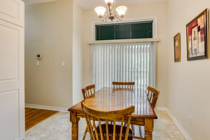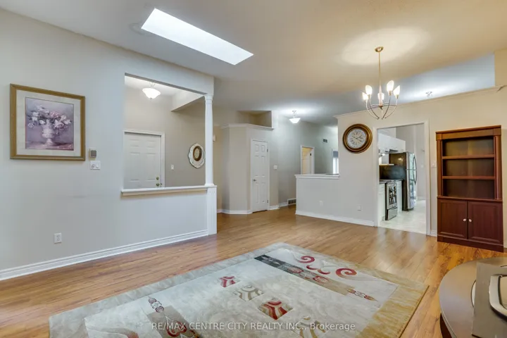 +"PublicRemarks": "Located in a desirable North London condo community near Masonville Mall, Western University, and University Hospital, this one-floor home with a walkout lower level offers space, comfort, and convenience. The main floor features 2 bedrooms and 2 full bathrooms, including a primary suite with walk-in closet and ensuite. A bright eat-in kitchen opens to a private, covered deck, while the living room area boasts 10-foot ceilings, a gas fireplace, and skylight. The lower level is ideal for guests, offering a large family room, third bedroom, full bath, and walkout to a brick patio. You'll also find a massive unfinished area perfect for a workshop, craft space, or future finished living space, plus a handy cold room and extra storage under the stairs. Additional perks include central vacuum, a built-in hallway credenza, ample closets in every bedroom, and a charming gazebo in the common area for your enjoyment. Guest parking is available. Perfect for downsizing or those seeking easy one-floor living."