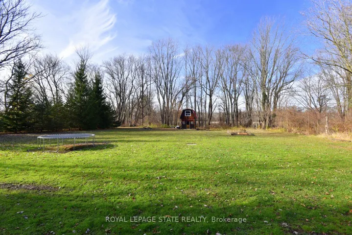 +"PublicRemarks": "Country living close to town and all amenities! This 3+1, 2.5 bath bungalow on sought after 173 x 300 private mature treed lot. Great curb appeal with brick & vinyl sided exterior with attached garage, ample parking, deck, large patio and private mature treed backyard. Breezeway foyer to open interior layout: kitchen with breakfast bar, stainless steel appliances, spacious living/dining room with electric fireplace, 3 beds, 4 pc main bath & 2 pc guest, basement with family room, bedroom, 3 pc bath, laundry & storage. Enjoy the private yard, deck, new patio (2025), hot tub (as-is) and large lawn area, edged with mature trees. Shed with power. Updates include Furnace Oct 25, Septic 2022, 24-25; windows, weeping tile and waterproofing, concrete patio, some siding, main bathroom, interior painting throughout, interior doors & trim, laminate flooring & carpeting in bedrooms (original hardwood underneath). Possible severance too! RSA"