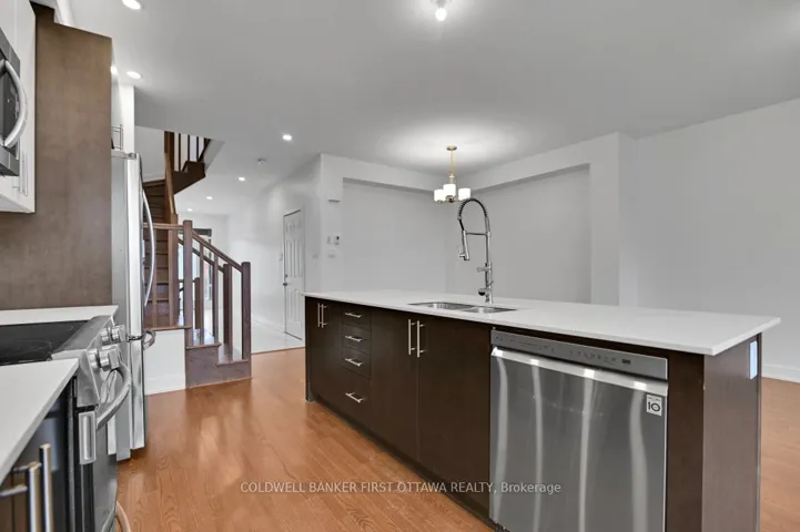 +"PublicRemarks": "Welcome to this beautifully maintained open-concept 3-bedroom townhouse located in the highly desirable Stittsville/Kanata area, just minutes from shopping, schools, parks, and public transit. Freshly painted and thoughtfully upgraded, this home features a bright, open kitchen with elegant quartz countertops, overlooking the spacious living and dining area. Enjoy gleaming hardwood floors and a cozy fireplace, perfect for relaxing or entertaining. Hardwood stairs lead you to the second level, where you will find a hardwood hallway and three generously sized bedrooms, each offering ample closet space. The master bedroom includes its own ensuite. The large finished basement provides a versatile space-ideal for a family room, home gym, office, or entertainment area-ready for you to make it your own. All rental applications must include a completed application form, a letter of employment, and a recent credit report. No pets and no smoking."