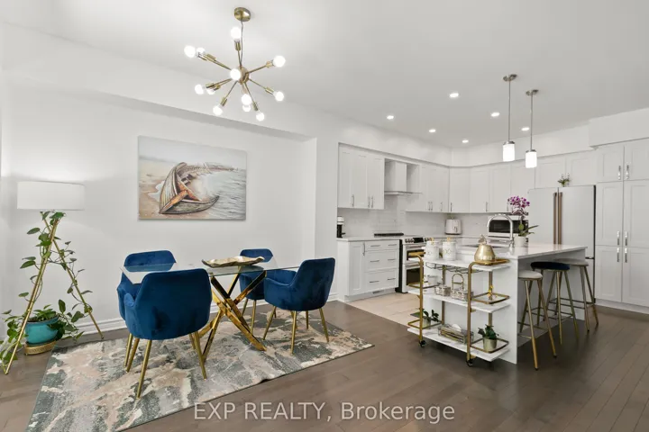 +"PublicRemarks": "Welcome to 1010 Eider Street, stunning Fairhaven-End model by Richcraft Homes in highly sought-after Riverside South. Built in 2022, this meticulously maintained 3-bed + den, 3-bath END-UNIT townhome offers over 2,200 sq. ft. of living space, backing onto a serene treed area with NO REAR NEIGHBOURS. Step inside to find elegant hardwood floors throughout the main level, a bright open-concept layout, and a gas fireplace that adds warmth to the family room. The chef-inspired kitchen features quartz countertops, sleek cabinetry, and a full suite of luxury White Café appliances. Enjoy casual dining at the breakfast bar or entertain in the adjacent dining area overlooking the private backyard. Upstairs, a generous loft/den provides the perfect workspace or reading nook. The primary bedroom is a true retreat with a large walk-in closet and a spa-style ensuite featuring a soaker tub, walk-in glass shower, and quartz counters. Two additional bedrooms, a full bath, and second-floor laundry complete this level. The fully finished basement offers a spacious rec room with endless possibilities. With 3 parking spaces, a single garage, and prime proximity to schools, parks, and shopping, this move-in ready home checks every box!"