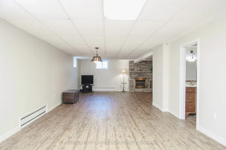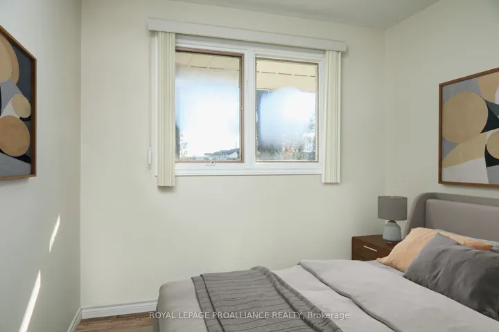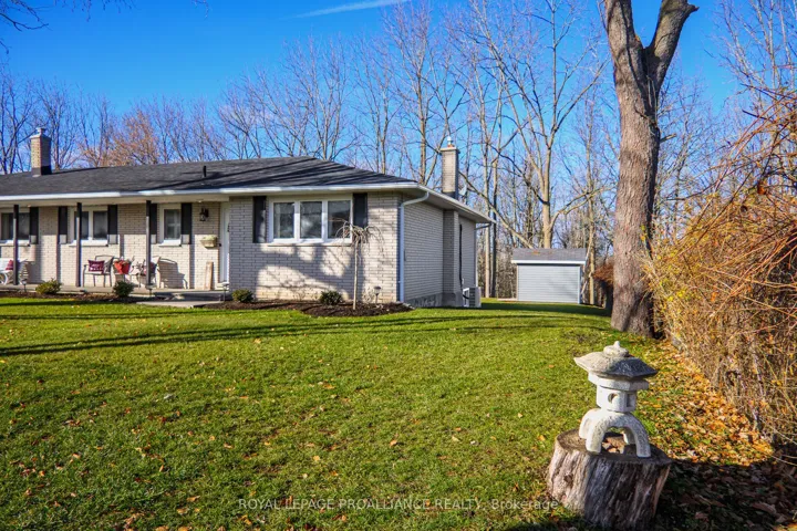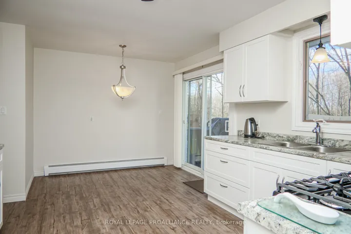 +"PublicRemarks": "Discover this fully renovated, move-in-ready brick bungalow offering privacy, comfort, and modern style. Set on a quiet dead-end street/cul-de-sac and backing onto mature woods, this home blends nature and convenience perfectly. Step onto the inviting covered front porch before entering the bright main level-approximately 1,500 sqft. (over 2,700 sq. ft. total living space). The spacious living room features a large bay window overlooking the private backyard, while the formal dining room connects seamlessly to a stunning eat-in kitchen. Recently gutted and fully renovated, the kitchen boasts new cabinetry, counters, flooring, and appliances-including a gas range plus a functional L-shaped layout featuring pot/pan drawers, and patio doors leading to the rear deck. The main floor includes three bedrooms and a renovated 3-piece bathroom with a walk-in glass shower. A handy stairlift connects to the finished lower level (removable if desired), featuring a large L-shaped recreation room with a natural gas fireplace, rustic dry bar with barn board accents, a second bathroom, and a laundry area with sink. Additional highlights include a double attached garage with inside entry, new vinyl flooring throughout, efficient hot water radiant heating, and a ductless split unit for cooling. Outside, enjoy a back deck, garden shed, and newer architectural shingles. Conveniently located close to schools, downtown, and all amenities, just 15 minutes to Napanee Hospital. This solid brick home offers the perfect mix of charm, quality, and privacy. A true move-in-ready gem on a quiet cul-de-sac, your next chapter starts here."