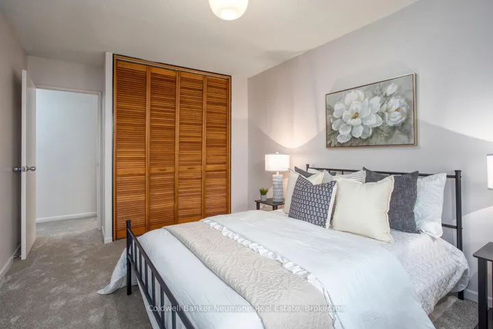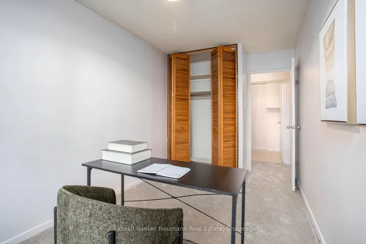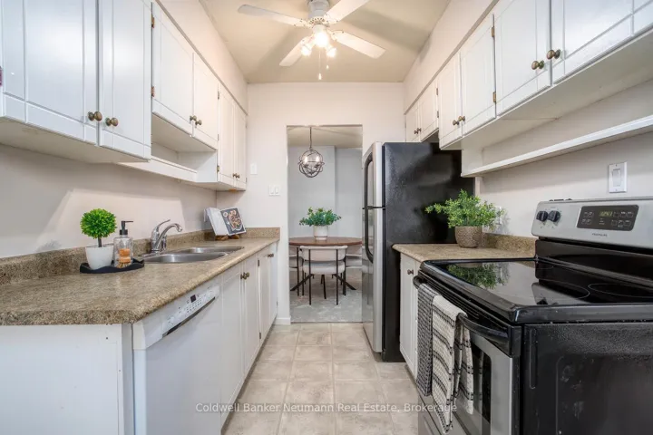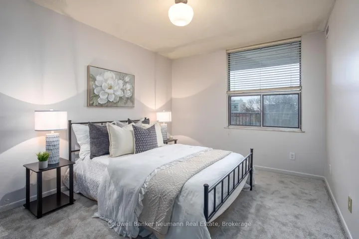 +"PublicRemarks": "Welcome home! This charming 2-bedroom downtown condo has been freshly painted for its new owner (November 2025) and features brand-new carpeting (2025) for added comfort. Step inside to a spacious living room that opens onto an expansive, one-of-a-kind balcony with sweeping views of the vibrant downtown skyline-perfect for relaxing mornings or unwinding after a long day. Just off the efficient galley kitchen is a welcoming dining room, ideal for family dinners, hosting gatherings, or entertaining friends. The unit also includes in-suite laundry and generous storage, adding everyday convenience. The oversized bathroom has been beautifully maintained and offers both comfort and style. The two bedrooms are spacious and the whole unit has large windows which allow for plenty of natural light. The building is rich with amenities, including an indoor pool, sauna, party room with pool table and small library, bike room, newly remodeled fitness room, workshop, and a fully fenced outdoor entertaining area complete with BBQ facilities and picnic tables. Even better-your condo fees cover heat, hydro, and water! One underground parking space (#4, P3) is included with the unit. Situated within walking distance to Downtown Kitchener, the Kitchener Farmers' Market, Victoria Park, countless restaurants, ION public transit, places of worship, banks, shops, the LRT, and the scenic Iron Horse Trail, this condo offers an unbeatable location for convenience and lifestyle. Don't miss out on this lovely home-perfect for downsizers, first-time buyers, or investors. Book your private showing today-you won't be disappointed!"